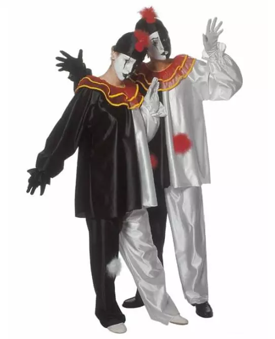 Veldig fin finish! Dette Pierrot-kostymet består av en jakke med krage, bukser og en hatt. Jakken er svart og hvit med en rød pompong på den hvite siden og har også en rød krage kantet med en gul kant. Buksene er også svarte og hvite med en hvit pompong på den svarte siden. Hatten er svart med en rød pompong. Dette kostymet er perfekt for å spille en Pierrot til karneval eller på kostymefester.   © Copyright Widmann SRL. Inkludert tilbehør: Jakke Bukser Hatt Materiale: 100 % polyester Stell: Håndvask Målinformasjon: For størrelse S, jakke ca. 78 cm lang, ermer ca. 72 cm lange, bukser ca. 101 cm lange og hatt 54 cm i diameter.