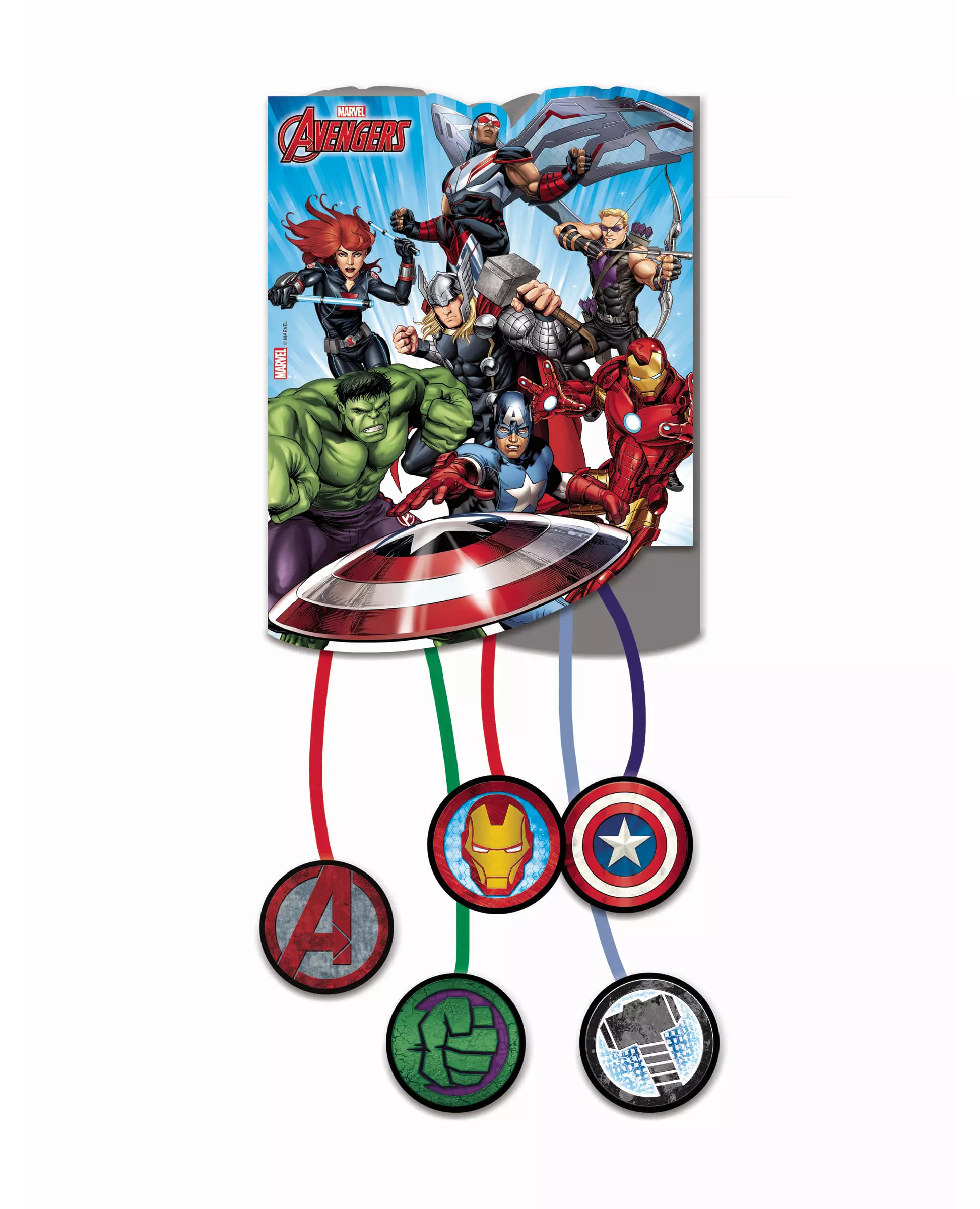 Et spill for hele familien! Denne piñataen er offisielt lisensiert av Avengers Mighty™. Den måler omtrent 20,5 x 22 cm. Den er laget av papp og dekorert med medlemmer av Avengers™-teamet. Du finner dine favoritt Marvel™-superhelter: Iron Man, Captain America, Hulk... Fyll piñataen din med godbiter og små overraskelser gjennom åpningen som er beregnet for dette formålet. Slå den med en piñata-pinne (ikke inkludert) for å slippe ut innholdet. De små kan skyte. Dra i snorene etter tur, én av dem vil åpne piñataen. Se for deg en morsom aktivitet med denne piñataen til barnets bursdag! Inkludert tilbehør: 1 piñata. Materiale: Papp.