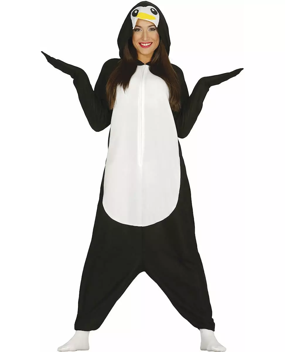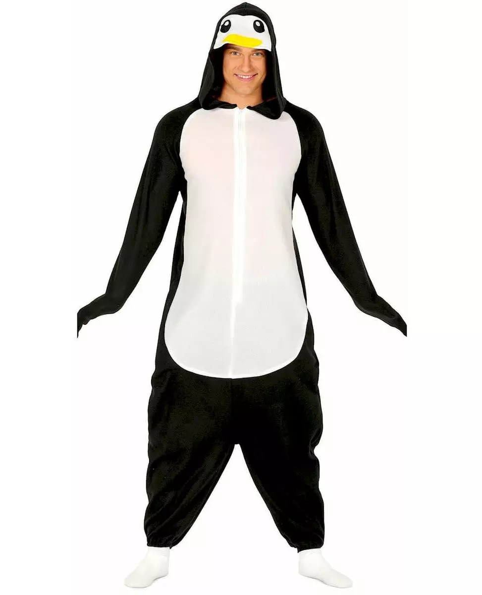 Morsom fugl! Dette pingvinkostymet for voksne består av en stor hettegenser. Jumpsuiten er svart med hvit mage og har glidelås foran. Hetten forestiller hodet til en pingvin med gult nebb. Dette kostymet vil være perfekt for en kveld på isflaket, til en fest med dyretema eller til og med til karneval. Inkludert tilbehør: Jumpsuit med hette Materiale: 100 % polyester Vedlikehold: Håndvask