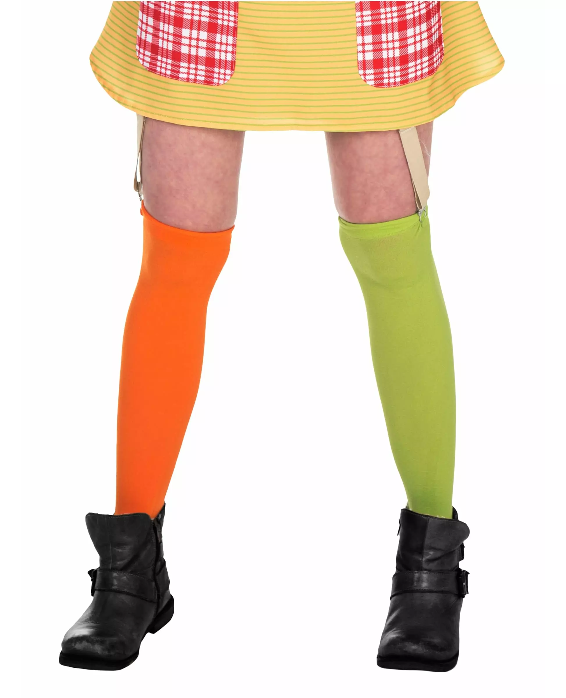 Tror du er Pippi Langstrømpe? Disse strømpene er offisielt lisensiert av Pippi Langstrømpe. Den ene er oransje, mens den andre er grønn. Disse strømpene vil være perfekte for å fullføre Pippi Langstrømpe-kostymet ditt til karneval. Inkludert tilbehør: 2 strømper. Materiale: 100 % polyester.