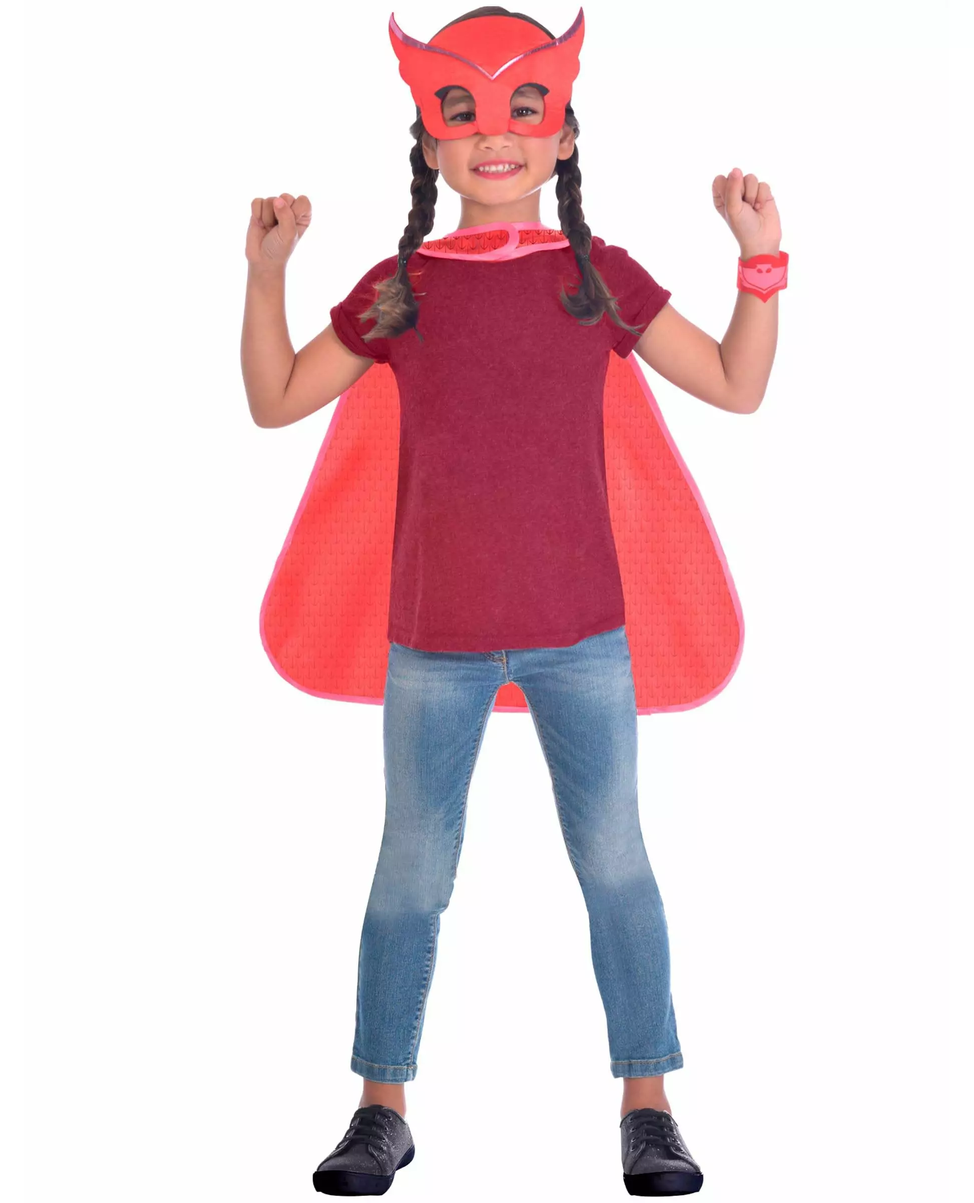 Forvandle barnet ditt til uglen Bibou! Dette offisielt lisensierte PJ Masks™ Bibou-settet inneholder en maske, et armbånd og en kappe (t-skjorte, bukser og sko er ikke inkludert). Den røde kappen med borrelås er trykket med Bibous PJ Masks™-logo. Den matcher ulven som festes rundt hodet med en strikk. Dette gir barnet ditt god synlighet. For å fullføre Bibou-kostymet er et matchende armbånd med borrelås inkludert. Barnet ditt vil ha det gøy med å tilkalle Bibou-tornadokraften sin med Bibou-pysjamassettet til karneval eller en utkledningsbursdag! Inkludert tilbehør: Ulvekappe-armbånd Materiale: 100 % polyester Vedlikehold: Håndvask