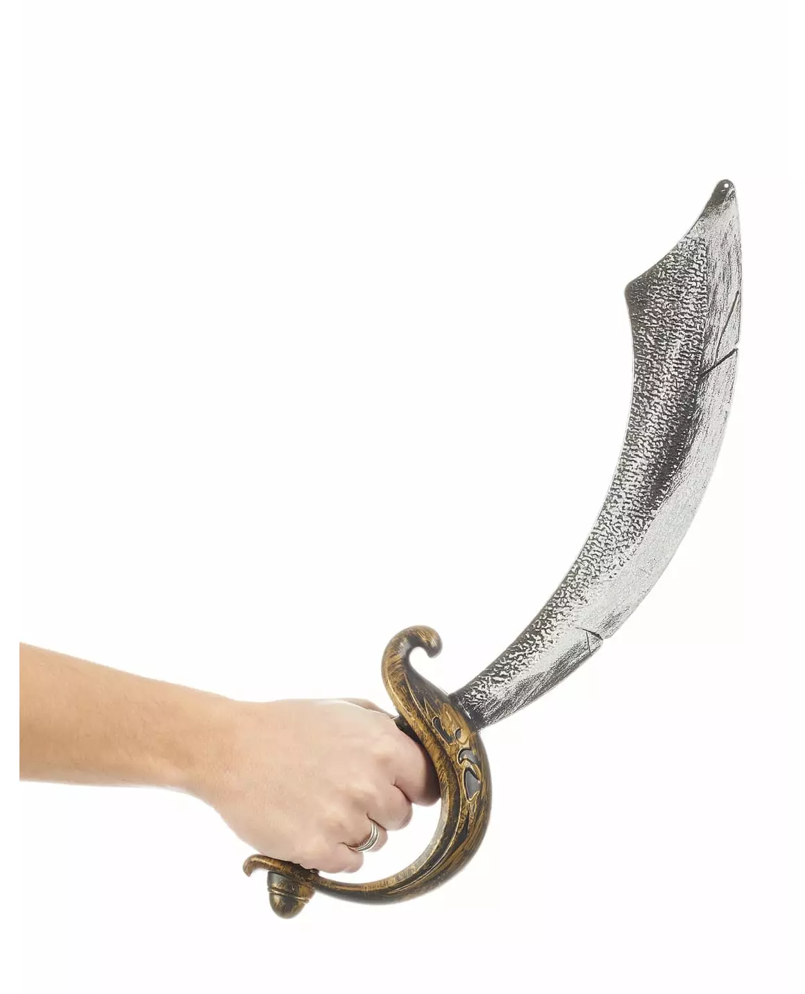 Gå etter de største skattene om bord på piratskipet ditt. Denne piratsabelen i plast måler omtrent 48 cm i lengden. Bladet er svart og grått med en metallisk effekt. Håndtaket er svart og gull. Dette tilbehøret vil være perfekt for å fullføre et piratkostyme til karneval eller en utkledningsfest. Inkludert tilbehør: Sabel. Materiale: Plast.