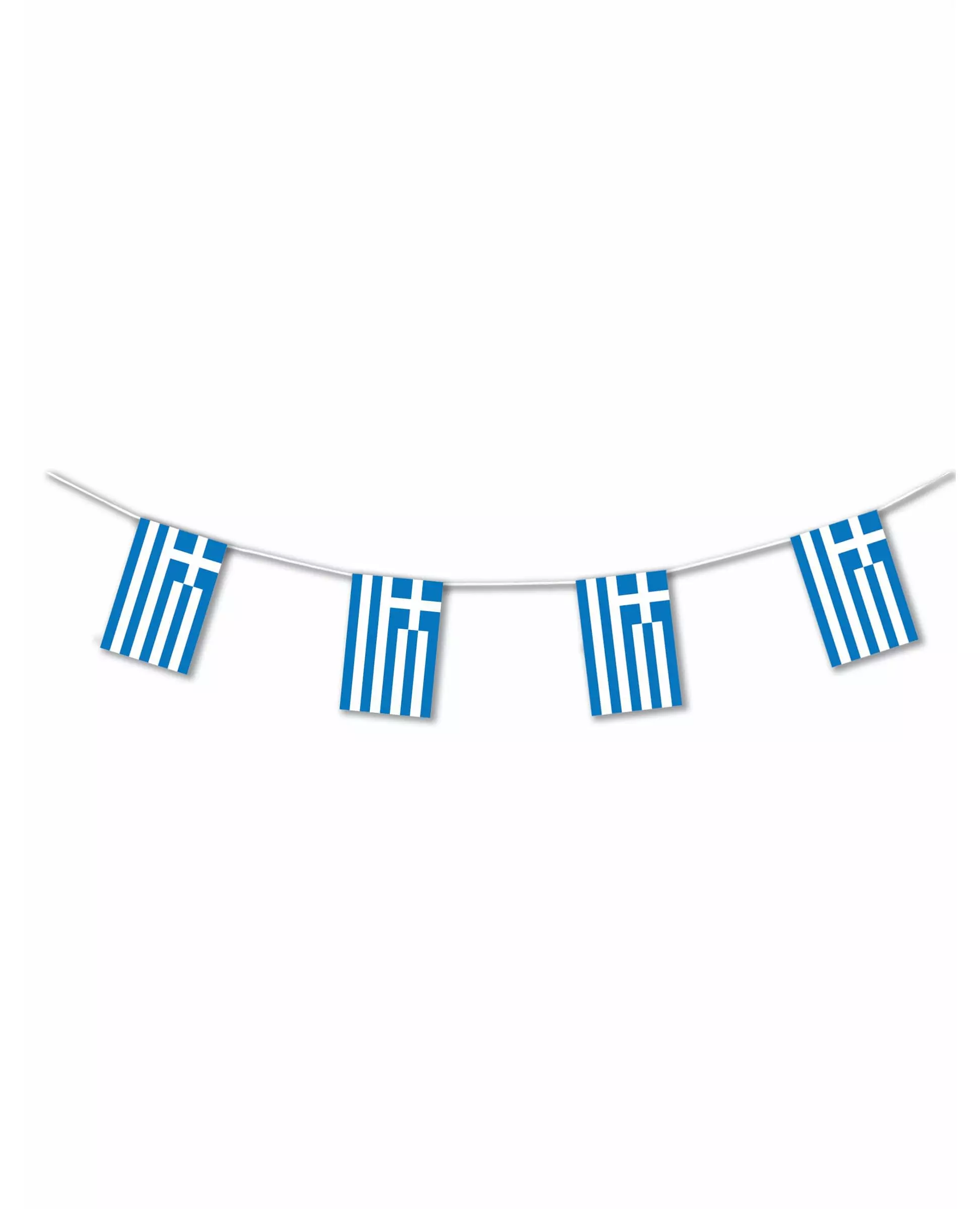 Hellas i hjemmet ditt! Denne plastgirlanderen måler omtrent 5 m i lengden. Den har små flagg som representerer fargene i Hellas. Denne girlanderen vil perfekt fullføre romdekorasjonen din for en gresk-temafest med venner! Inkludert tilbehør: 1 girlander Materiale: Plast