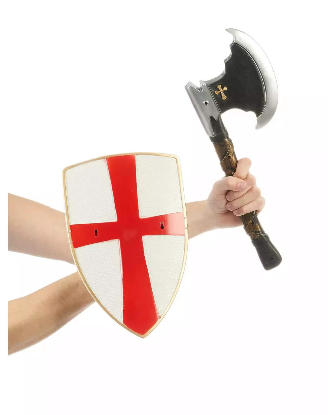 Bli en ekte ridder! Dette riddersettet i plast for barn består av et skjold og en øks. Det hvite og røde skjoldet har en krok for enkel håndtering. Det måler 30 cm i høyden. Plastøksen måler 42 cm i høyden. Dette tilbehøret vil være perfekt for å fullføre ridderantrekket ditt til en bursdag, karneval eller andre festlige arrangementer. Inkludert tilbehør: Skjold Øks Materiale: Plast