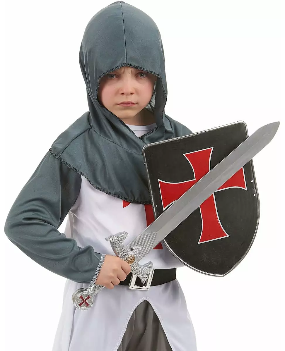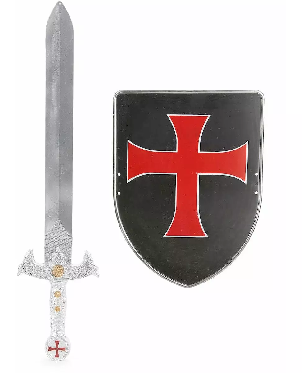 Plastsett for korsfarerridder, skjold og sverd til barn
