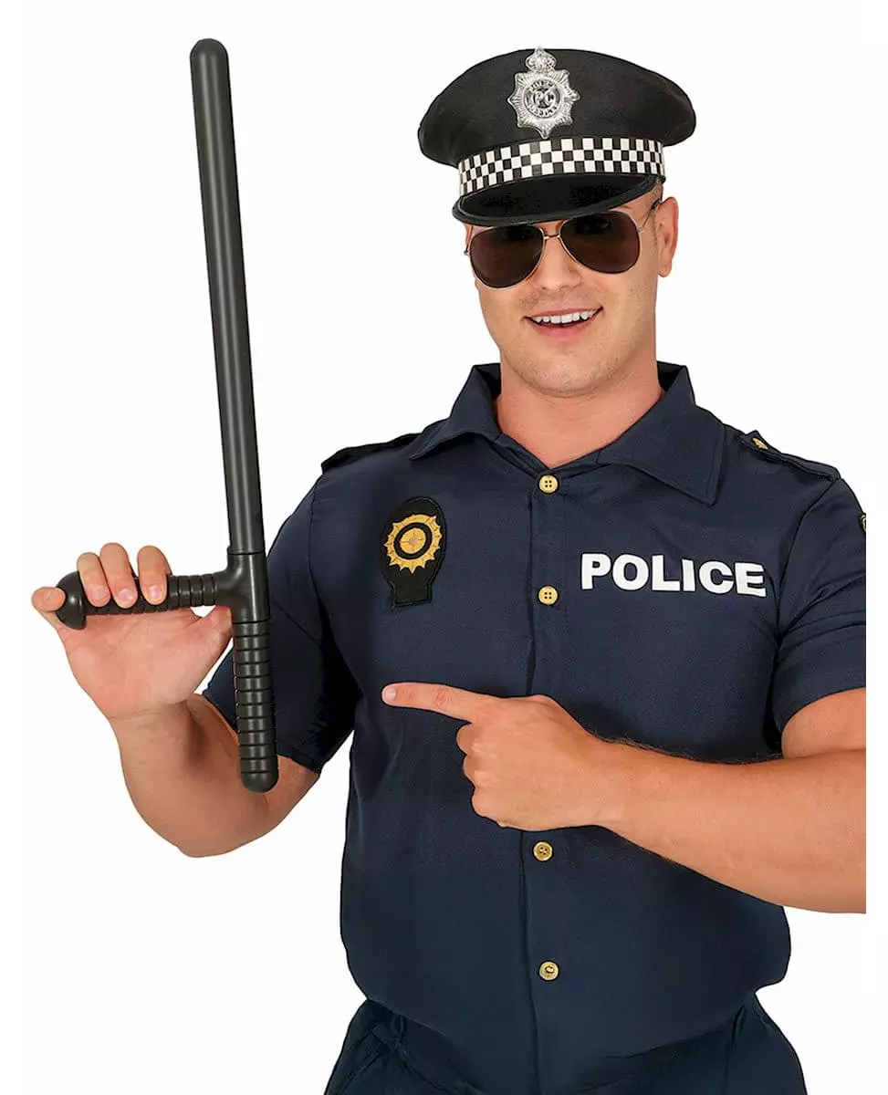 Oppretthold lov og orden Denne svarte politibatongen i plast for voksne måler omtrent 50 cm i lengden. Den er det ideelle tilbehøret for å fullføre et politikostyme til en uniformsfest eller til karneval. «Copyright Widmann SRL». «Copyright Widmann SRL. Inkludert tilbehør: Batong Materiale: Plast