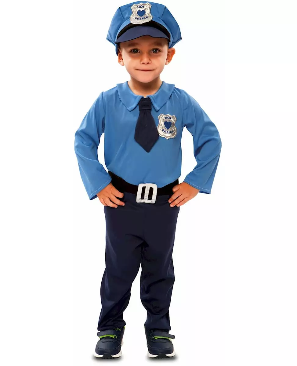 Gjør barnet ditt til en ekte liten politibetjent. Dette politibetjentkostymet for barn består av en topp, bukser og en lue (sko ikke inkludert). Den langermede toppen er blå. Den har et lite marineblått slips med et politimerke. Buksene er marineblå med et belte i livet. Til slutt fullfører en politihatt kostymet. Det er en blå hjelm med et politimerke. Dette kostymet vil være perfekt for å opprettholde orden under karnevalsparaden. Inkludert tilbehør: Topp, bukser, lue. Materiale: 100 % polyester. Vedlikehold: Håndvask.