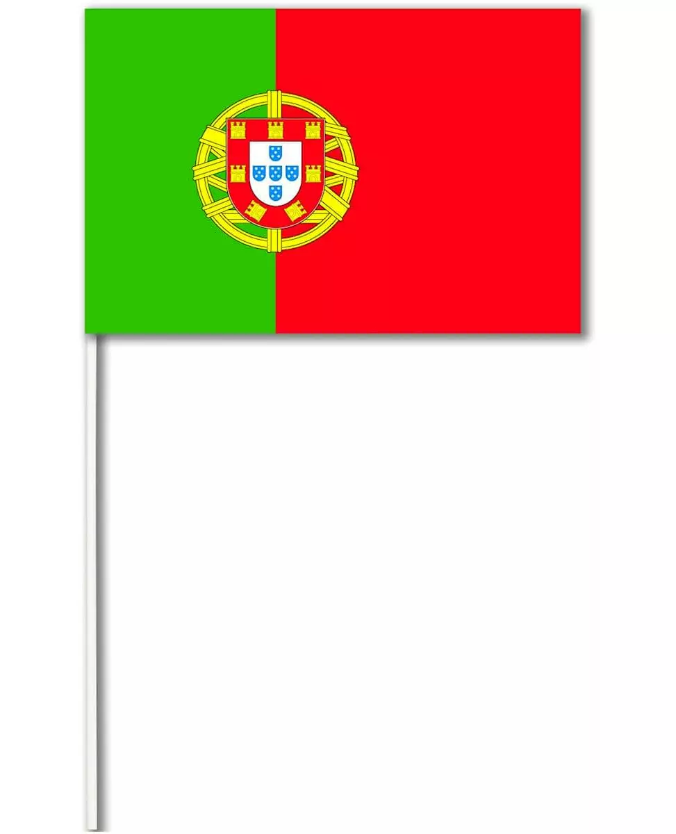 Heia Portugal! Dette portugisiske flagget er laget av papir. Festet til en stang måler det omtrent 14 x 21 cm. Det vil være perfekt for å støtte det portugisiske landslaget under en sportskonkurranse som VM eller EM. Inkludert tilbehør: 1 flagg Materiale: Papir