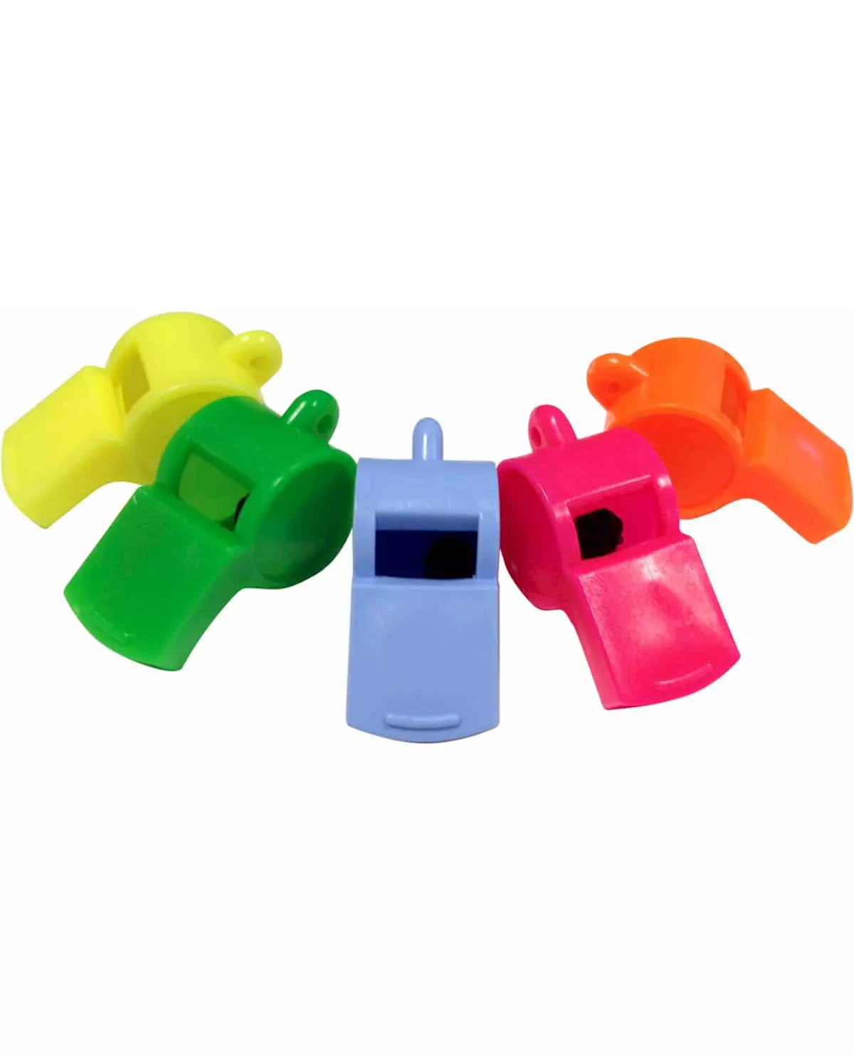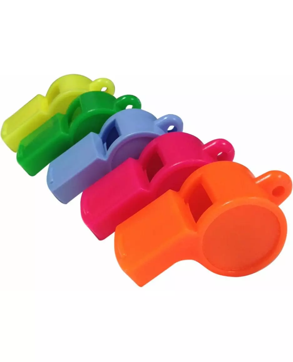 Gjør deg hørt med disse fargerike fløytene Dette settet består av 4 dommerfløyter i plast. Du kan få fløyter i tilfeldig farge, gul, grønn, oransje, himmelblå, mørkeblå, rød eller til og med rosa. Disse fargede fløytene måler omtrent 5,5 cm i lengde og 2,3 cm i bredden. Disse fløytene vil være perfekte for å gjøre deg hørt og fullføre dommerkostymet ditt på alle slags sportsbegivenheter. Inkludert tilbehør: 4 fløyter Materiale: Plast