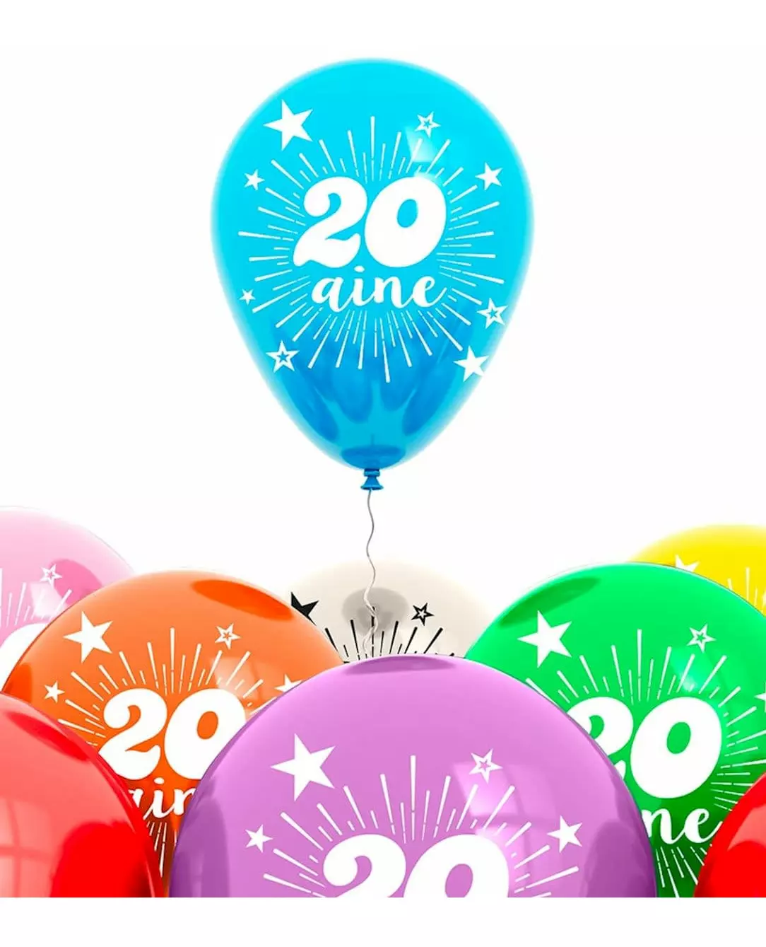Ideell for en fargerik bursdagsdekorasjon! Dette settet med 8 flerfargede ballonger er laget av lateks. Flere farger er tilgjengelige: svart, mørkeblå, rosa, rød, gul, grønn, oransje, himmelblå. Du kan blåse dem opp til 30 cm i diameter. Hvite festgaver og inskripsjonene «gratulerer med dagen» og «20 år» er også til stede. Dette settet vil være ideelt for å fullføre festlokaledekorasjonen din til en bursdagsfest. Inkludert tilbehør: 8 ballonger Materiale: Naturlig gummilateks