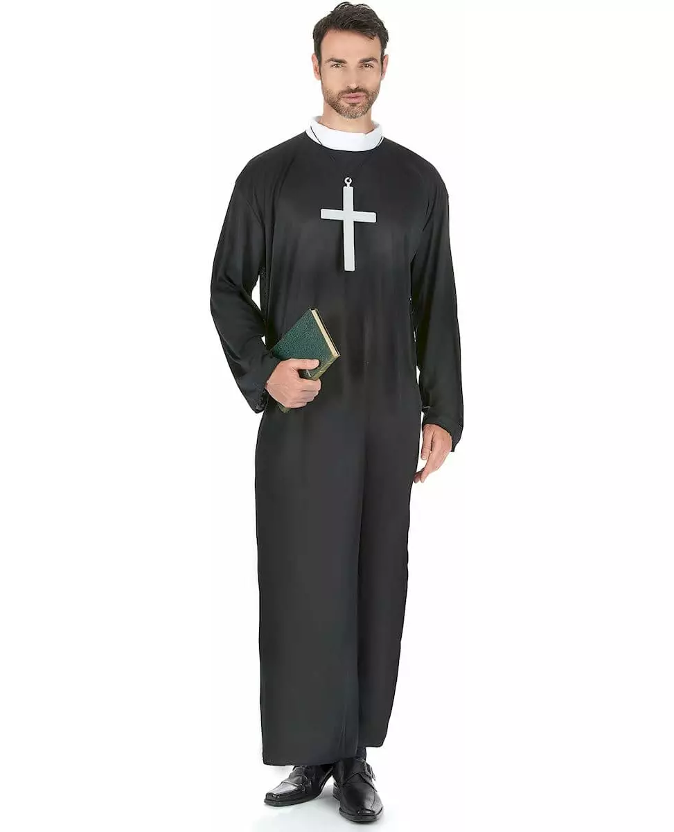 Avlegg et kyskhetsløfte for én kveld! Dette prestekostymet for menn inkluderer en tunika. Tunikaen er myk og helt svart. Den har lange ermer og går ned til føttene. Den hvite kragen gir et realistisk utseende. En borrelåslukking lar deg lukke kragen bak i nakken. Dette prestekostymet for menn er perfekt for å spille en ekte katolsk prest på utkledningsfester, til karneval eller til et utdrikningslag. Inkludert tilbehør: Tunika Materiale: 100 % polyester Stell: Håndvask Mål: - Størrelse S: kjole ca. 145 cm lang - Størrelse XL: kjole ca. 157 cm lang, skulderbredde ca. 71 cm