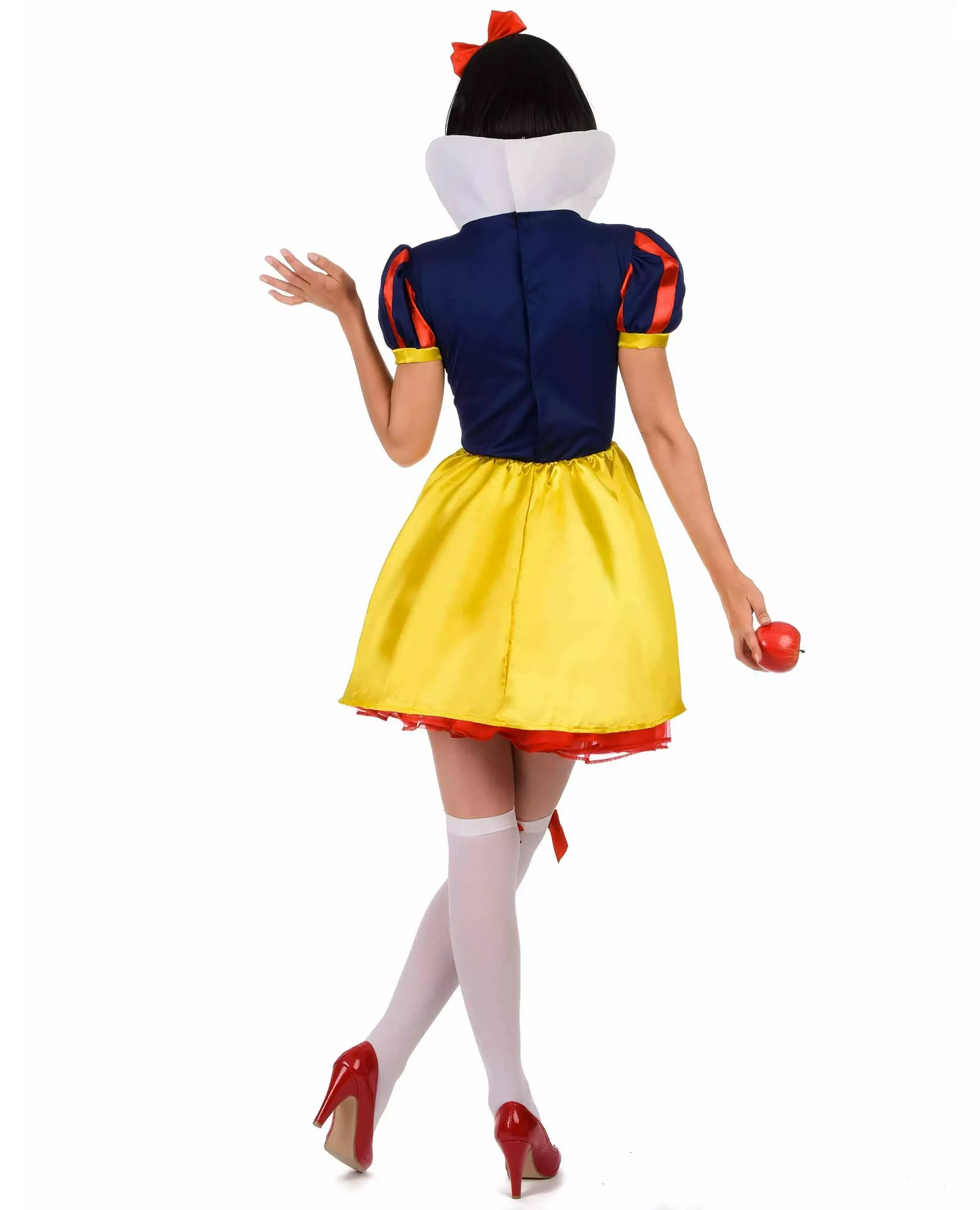 Ikke bit i eplet! Dette Prinsesse av de 7 dvergene-kostymet for kvinner tilbyr deg en veldig pen kort kjole (eple, strømper, sko, parykk, underskjørt og sløyfe er ikke inkludert). Kjolen med korte, puffermer er marineblå ved bysten og har en samlet rød satengflette foran. Ermene er kantet med et skinnende gult stoff og stripete i rødt. Støtten sikres med borrelås og vil tillate opprettholdelse av en halvstiv hvit satengkrage. Midjen er elastisk for din komfort og strekker seg til et skjørt i en vakker gulfarge med satenginstrek. Til karnevalsfesten eller en eventyrlig prinsessetemafest vil dette sexy kostymet være perfekt! Inkludert tilbehør: Kjole Materiale: 100 % polyester Stell: Håndvaskbar