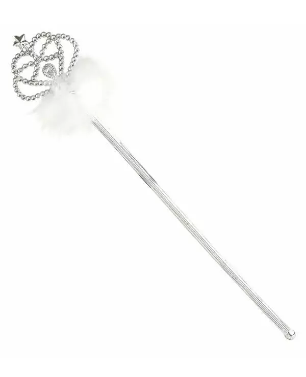 Som om du hadde magiske krefter! Denne sølvfargede prinsessetaven måler omtrent 38 cm. Mønsteret på toppen forestiller sammenflettede arabesker som fremkaller formen til to skinnende hjerter. Limt rundt den gir hvite syntetiske fjær et virkelig magisk utseende til dette tilbehøret. Som et supplement til et fe- eller prinsessekostyme, vil dette produktet være ideelt for kostymefester eller til en bursdagsfest. Copyright Widmann SRL. Inkludert tilbehør: Tryllestav Materiale: Plast og syntetisk