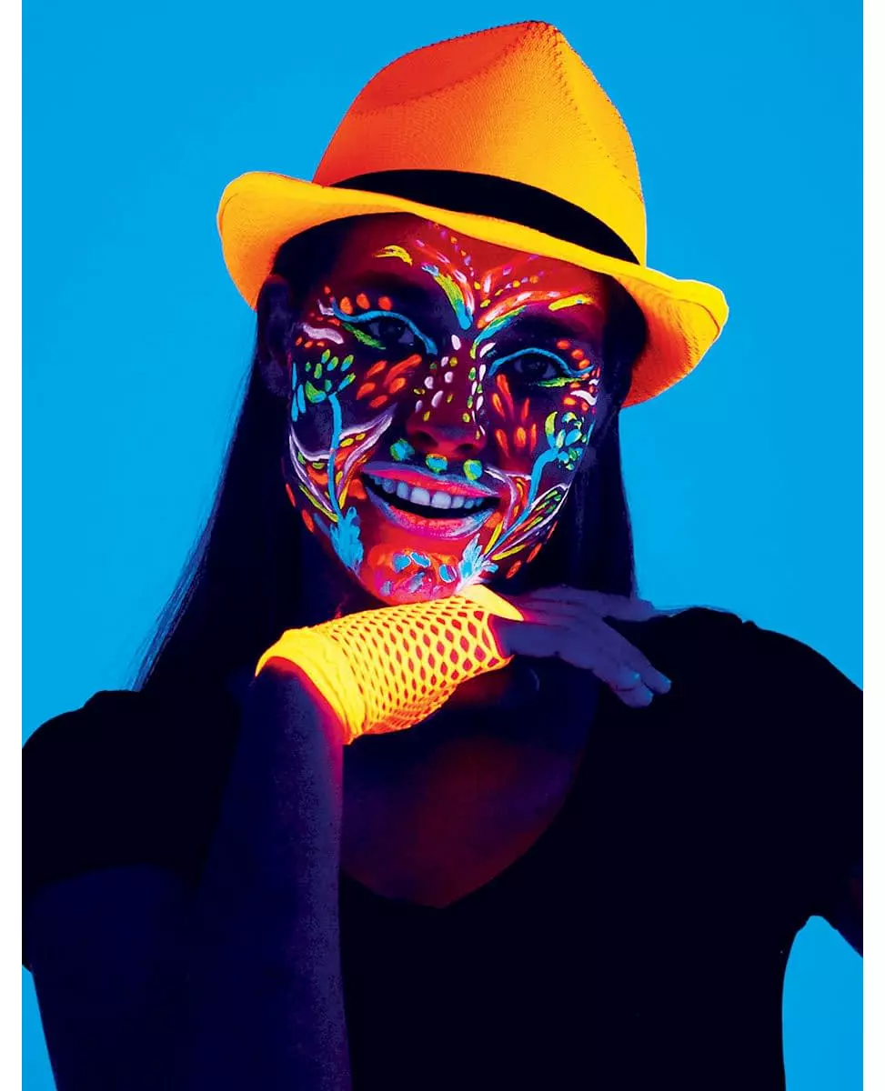Skinn sterkt om kvelden med UV-sminke. Denne sminketuben har en fosforescerende effekt når den utsettes for svart lys! Denne ansiktskremen er ideell for både store og små, tørker raskt og er enkel å rengjøre. Du kan bruke den til å male opptil 25 ansikter. Denne sminketuben vil garantert tiltrekke seg oppmerksomhet på fester! Ingredienser: Gul: Aqua, PVP, CI 77891, Glyserin, Dekstrin, Cetylalkohol, Stearinsyre, Paraffinum Liquidum, Fenoksyetanol, Trietanolamin, Akrylatkopolymer, Glyserylstearat, PEG-100-stearat, Sorbitanlaurat, CI 45350, Kaliumsorbat, Natriumbenzoat, CI 47005, Tokoferol. Grønn: Vann, PVP, CI 77891, glyserin, dekstrin, cetylalkohol, stearinsyre, paraffinum liquidum, fenoksyetanol, trietanolamin, akrylatkopolymer, glyserylstearat, PEG-100-stearat, sorbitanlaurat, CI 45350, kaliumsorbat, natriumbenzoat, CI 47005, bis(glycidoksyfenyl)propan/bisaminometylnorbornan-kopolymer, CI 42090, fluorescerende hvitemiddel 230, aluminiumhydroksid, tokoferol. Fiolett: Vann, PVP, glyserin, dekstrin, bis(glycidoksyfenyl)propan/bisaminometylnorbornan-kopolymer, cetylalkohol, stearinsyre, CI 77891, paraffinum liquidum, fenoksyetanol, trietanolamin, akrylat-kopolymer, glyserylstearat, PEG-100-stearat, sorbitanlaurat, kaliumsorbat, natriumbenzoat, aluminiumhydroksid, CI 45410, CI 45380, fluorescerende hvitemiddel 230, CI 42090, tokoferol. Blå: Vann, PVP, glyserin, dekstrin, cetylalkohol, stearinsyre, CI 77007, paraffinum liquidum, bis(glycidoksyfenyl)propan/bisaminometylnorbornan-kopolymer, fenoksyetanol, trietanolamin, akrylat-kopolymer, glyserylstearat, PEG-100-stearat, CI 77891, sorbitanlaurat, kaliumsorbat, natriumbenzoat, fluorescerende hvitemiddel 230, aluminiumhydroksid, tokoferol. Rosa: Vann, PVP, glyserin, dekstrin, cetylalkohol, stearinsyre, bis(glycidoksyfenyl)propan/bisaminometylnorbornan-kopolymer, CI 77891, paraffinum liquidum, fenoksyetanol, trietanolamin, akrylat-kopolymer, glyserylstearat, PEG-100-stearat, sorbitanlaurat, kaliumsorbat, natriumbenzoat, aluminiumhydroksid, CI 45410, CI 45380, fluorescerende hvitemiddel 230, tokoferol. Oransje: Vann, PVP, glyserin, dekstrin, cetylalkohol, stearinsyre, bis(glycidoksyfenyl)propan/bisaminometylnorbornan-kopolymer, CI 77891, paraffinum liquidum, fenoksyetanol, trietanolamin, akrylat-kopolymer, glyserylstearat, PEG-100-stearat, sorbitanlaurat, kaliumsorbat, natriumbenzoat, aluminiumhydroksid, CI 45380, CI 47005, CI 45410, tokoferol. Rød: Vann, PVP, glyserin, dekstrin, cetylalkohol, stearinsyre, bis(glycidoksyfenyl)propan/bisaminometylnorbornan-kopolymer, CI 77891, paraffinum liquidum, fenoksyetanol, trietanolamin, akrylat-kopolymer, glyserylstearat, PEG-100-stearat, sorbitanlaurat, kaliumsorbat, natriumbenzoat, CI 14700, aluminiumhydroksid, CI 45350, CI 45410, CI 45380, fluorescerende hvitemiddel 230, tokoferol. Hvit: Aqua, CI 77891, PVP, glyserin, dekstrin, cetylalkohol, stearinsyre, paraffinum liquidum, bis(glycidoxyphenyl)propan/bisaminomethylnorbornan-kopolymer, fenoksyetanol, trietanolamin, akrylat-kopolymer, glyserylstearat, PEG-100-stearat, sorbitanlaurat, kaliumsorbat, natriumbenzoat, fluorescerende hvitemiddel 230, aluminiumhydroksid, tokoferol. Inkludert tilbehør: 1 tube