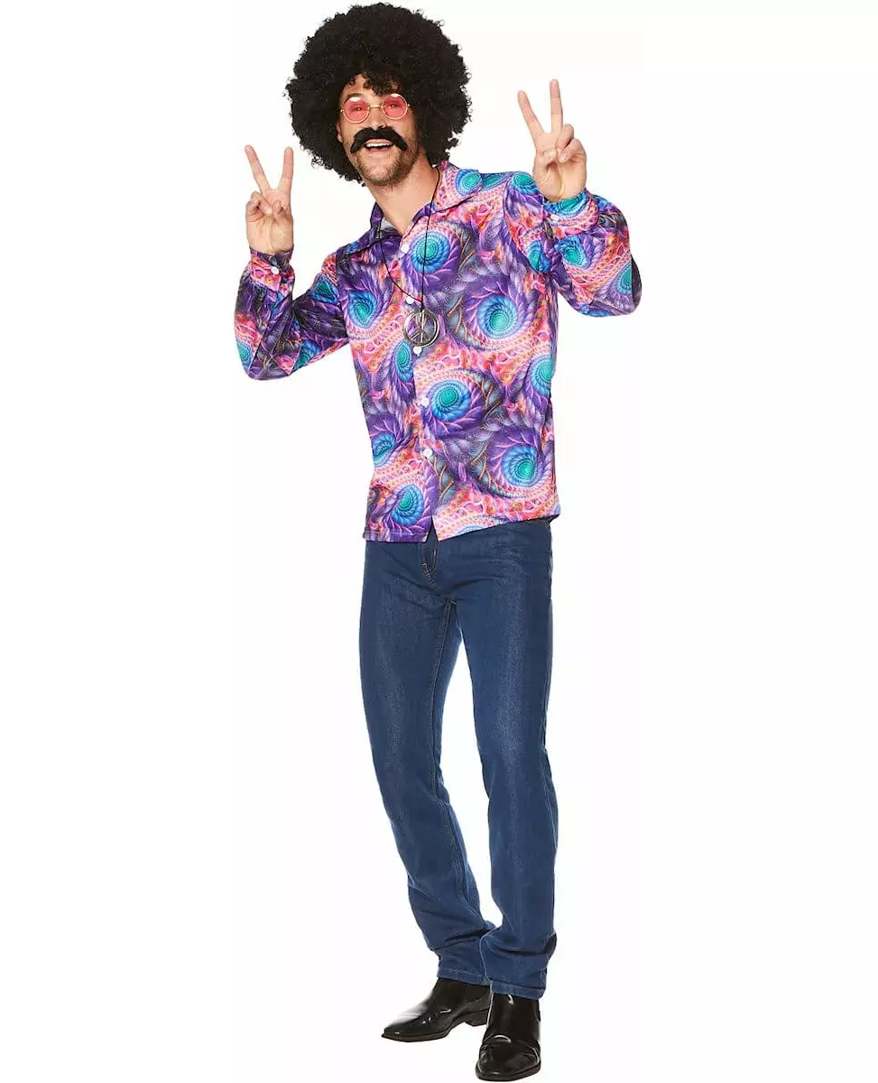100 % discostemning! Dette discokostymet inkluderer kun én skjorte. Skjorten har lange ermer og et psykedelisk trykk i lilla og rosa toner. Denne herreskjorten vil være et essensielt element på en discofest! Inkludert tilbehør: Skjorte Materiale: 100 % polyester Pleie: Håndvask