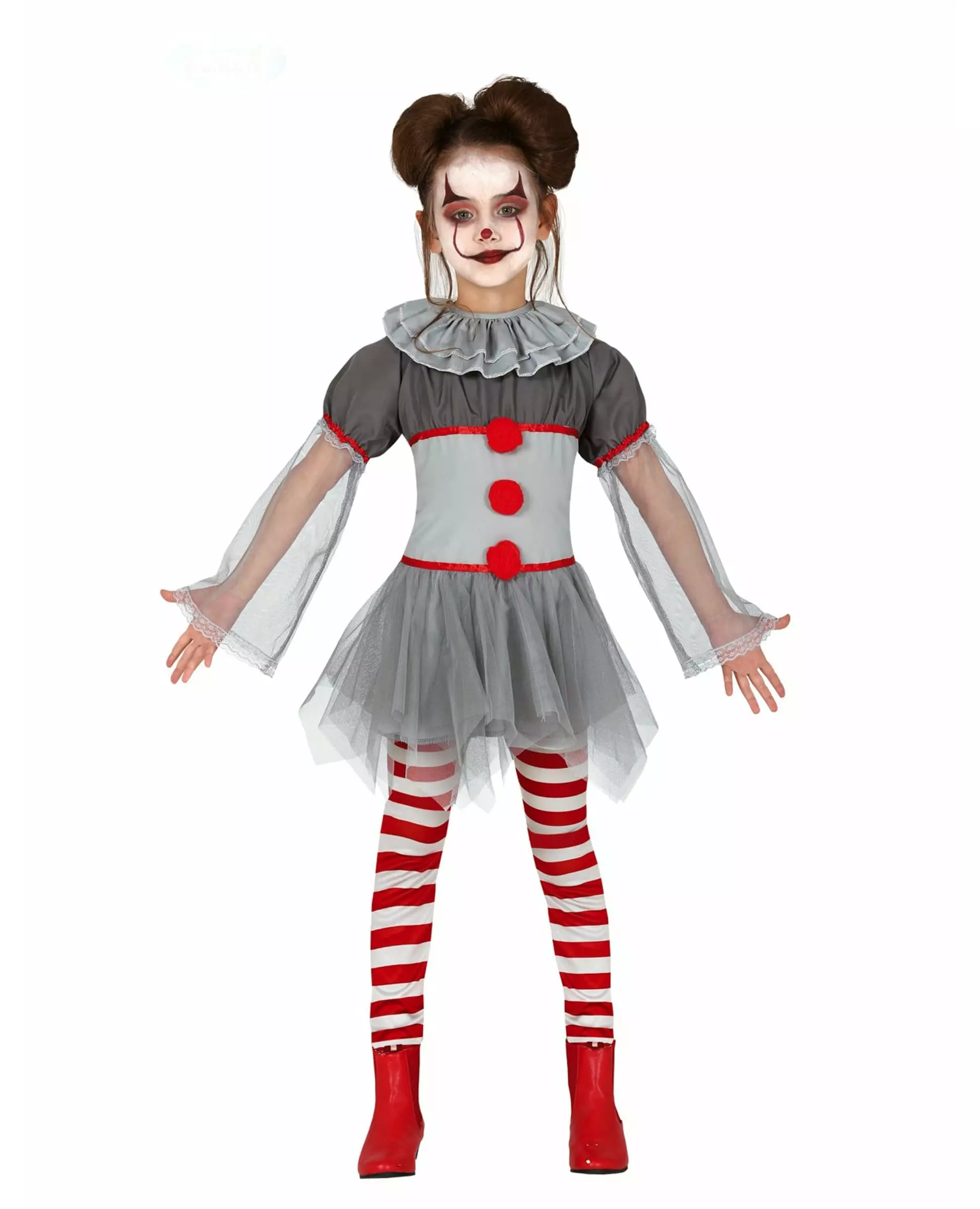Et psykopatisk klovnekostyme til Halloween! Dette psykopatiske klovnekostymet for jenter består av en kjole og leggings (sko og sminke er ikke inkludert). Kjolen er i flere grånyanser. Den har krage. Overdelen er lysere med røde pomponger. Underskjørtet og ermene er laget av tyll. Leggingsene har røde og hvite striper. Forvandle datteren din til en psykopatisk klovn til Halloween-festen med dette superonde klovnekostymet!. Inkludert tilbehør: Kjole Leggings Materiale: 100 % polyester Pleie: Håndvask