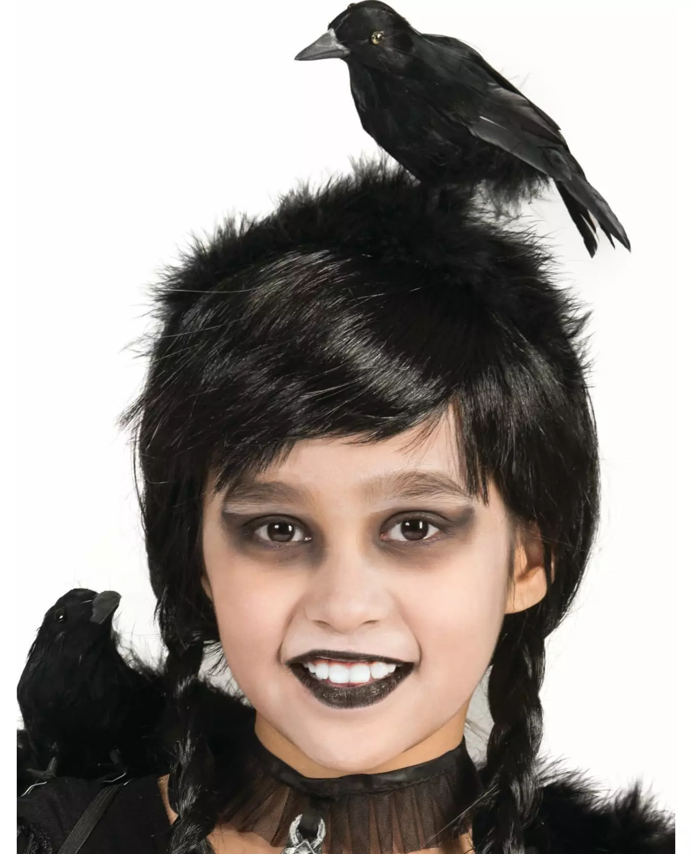 Perfekt for en ond dronning! Dette pannebåndet er for voksne og barn. Det er laget av svart fuskepels med en svart, falsk fjærkråke på toppen. Denne kråken ser faktisk ut til å sitte på hodet ditt som om den satt på et tre. Dette pannebåndet vil være ideelt for å pynte en ond dronnings eller hekseantrekk sammen med sitt spesielle kjæledyr til en Halloween-fest!. Inkludert tilbehør: pannebånd Materiale: Plast Plast