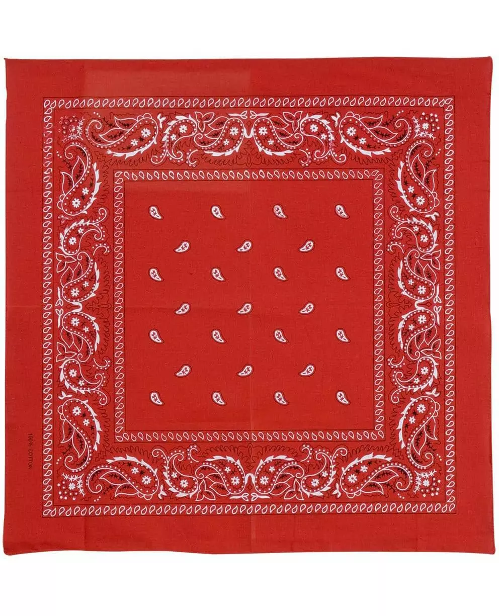 Cowboy-look! Rød bandana for voksne. Bandanaen er et stort stoffstykke på 53 x 53 cm som kan knytes for å gi den formen. Dette tilbehøret er uunnværlig for å være en ekte cowboy under pirat-tema-festene dine. «Copyright Widmann SRL». «Copyright Widmann SRL.»