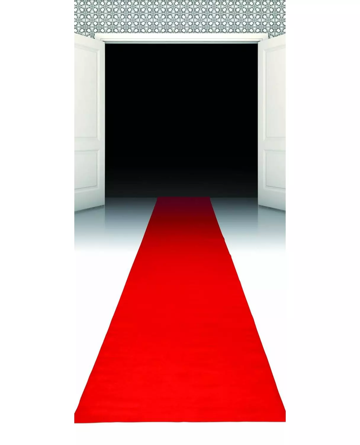 Gå på den røde løperen! Denne røde løperen måler 450 x 60 cm. Den festes med den medfølgende teipen. Den er veldig tynn, kun til engangsbruk. Denne røde løperen vil være perfekt for film- eller Hollywood-temafester. Inkludert tilbehør: Teppe