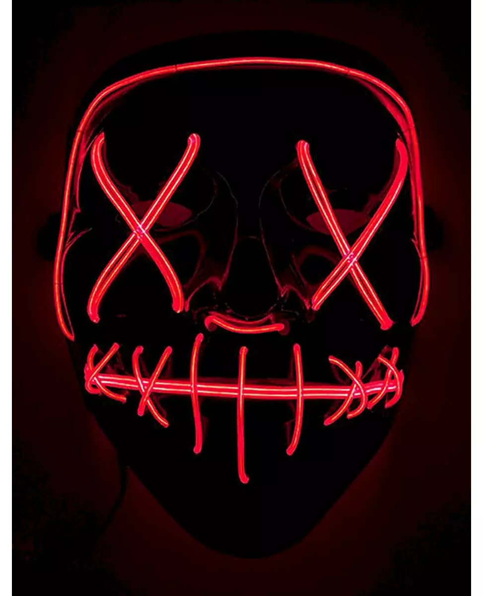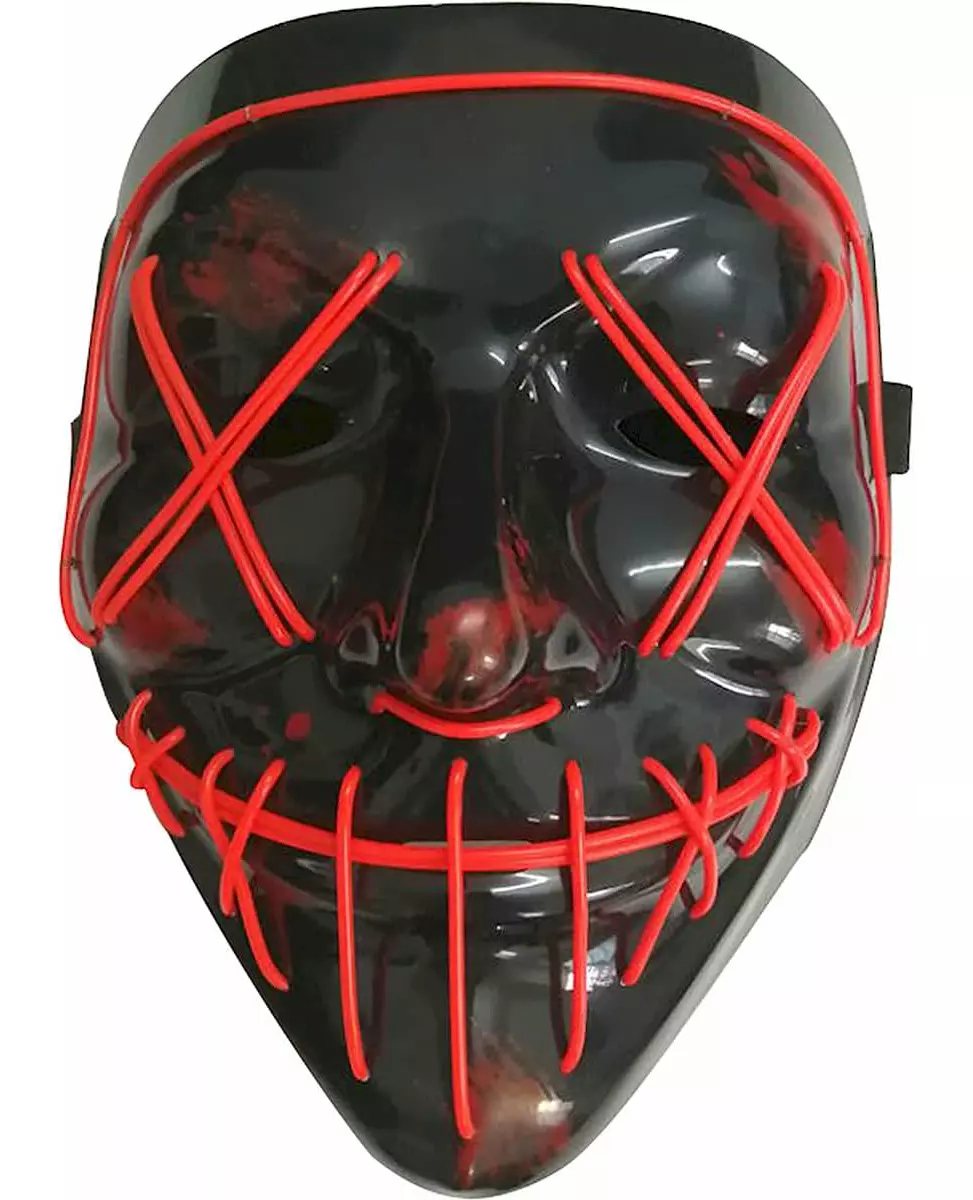 Legemliggjør frykt og angst på Halloween-kvelden med denne røde LED-masken for voksne! Denne røde LED-lysmasken for voksne er laget av svart plast. Den måler 20x18 cm. Hvis du ser på den i fullt dagslys, er den helt svart med spor av blod overalt ... denne masken har faktisk en skremmende historie! Men når du slår den på midt på natten, vil to enorme kors og en munn dekket med røde LED-ledninger fryse forbipasserende av frykt. Du har 4 forskjellige lysmoduser for masken: stabil (konstant lys), langsom blinking, rask blinking og av. Dette lar deg variere gledene! For å drive masken trenger du 2 AA-batterier (ikke inkludert) i esken, og det er det! En meter lang kabel lar deg oppbevare esken i en bukselomme, for eksempel! LED-ledningene avgir et kaldt lys, noe som betyr at ledningene ikke varmes opp når du bruker masken mens den er på! Så ingen helseproblemer! Denne røde LED-masken med et seriemorderkostyme, for eksempel, er nok til å sende frysninger nedover en smug ... På Halloween-kvelden kan dere gå ut i grupper på 3 eller 4 med en maske i forskjellige farger, nok til å lage en ganske ... skremmende gruppe!. Inkludert tilbehør: Rød LED-maske