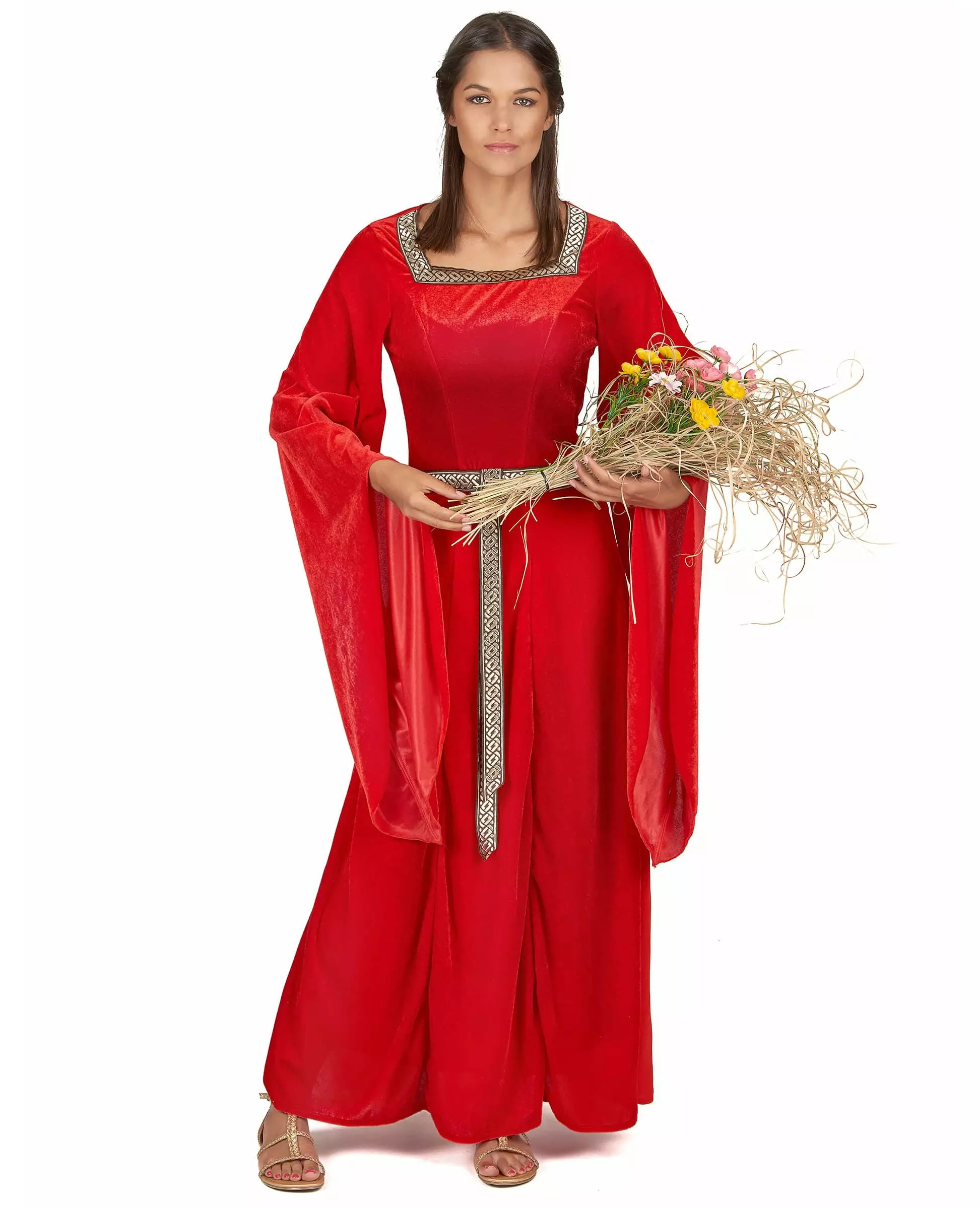Rød middelalderkostyme for kvinner med fløyelseffekt