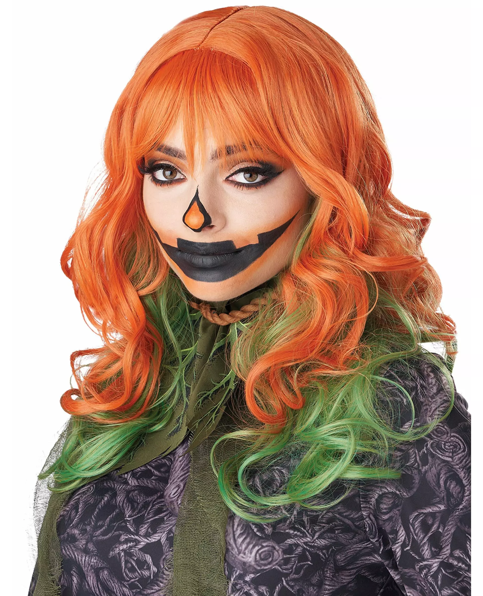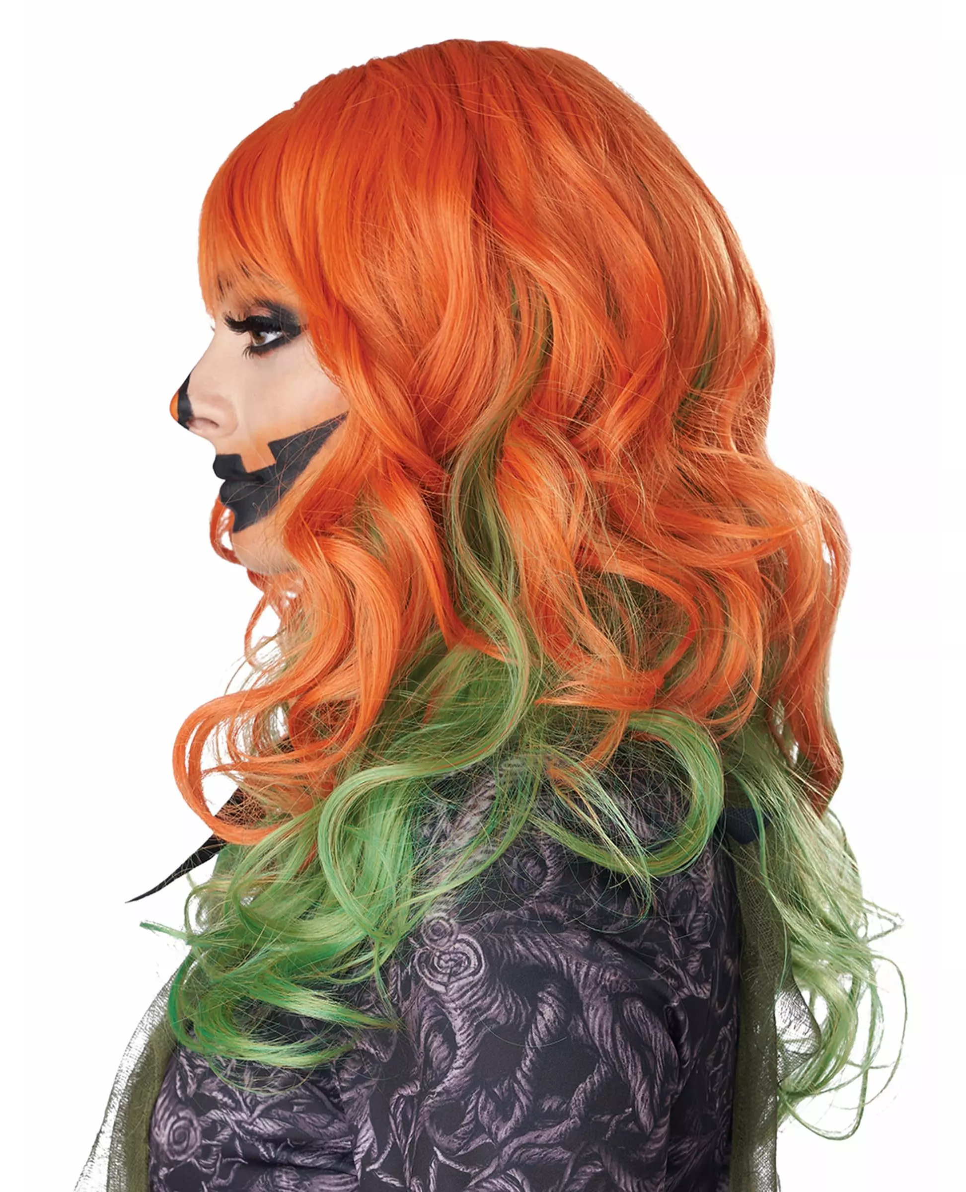 Den perfekte parykken for å forvandle seg til et gresskar! Denne røde og grønne parykken er for voksne. Parykken er mellomlang og har grønt hår nederst og rødt hår øverst. Håret er bølget med en tynn lugg som dekker pannen. Denne røde og grønne parykken er ideell for å fullføre et gresskar- eller fugleskremselkostyme, og vil gjøre et inntrykk! Inkludert tilbehør: Parykkmateriale: Syntetisk hår Stell: Ikke bruk varmeprodukter