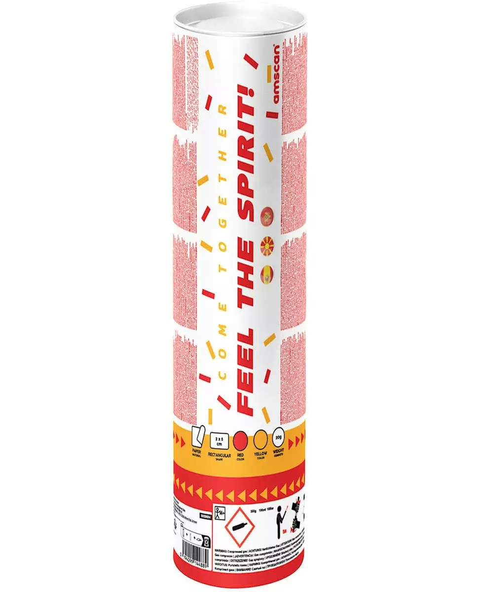 Støtt Spania! Denne konfettikanonen vil være perfekt for å støtte det spanske landslaget på sportsbegivenheter! Den er enkel å bruke, vri bunnen av kanonen i pilenes retning for å aktivere den. Konfettien i denne kanonen er laget av rødt og gult papir. Inkludert tilbehør: 1 konfettikanon