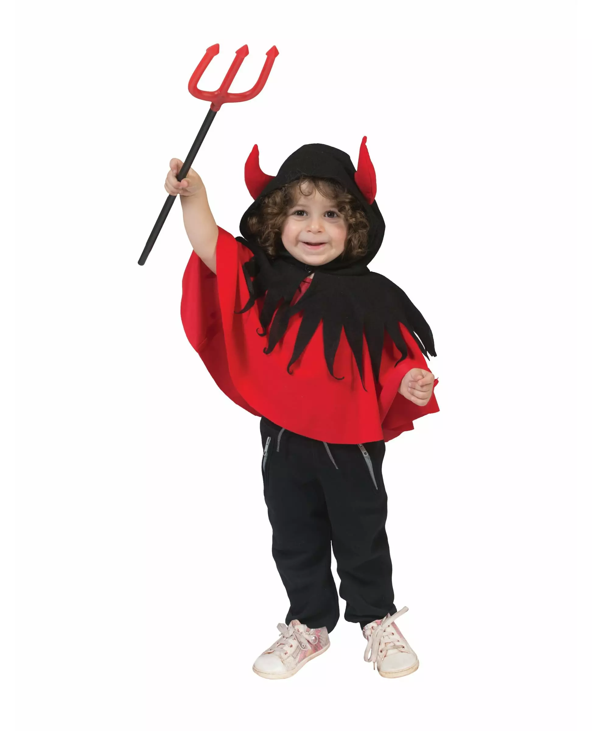Godterisamleren! Denne røde og svarte lille djevelkappen er for babyer. En svart hette er integrert i kappen. Djevelkappen er rød. I tillegg er det en svart hette med pene røde horn og en enkel svart knapp som lukking på toppen av kappen. Til slutt er bunnen av hetten kuttet i spisser for et mer demonisk utseende! Denne lille djevelkappen vil være perfekt for å samle så mye godteri som mulig på Halloween-kvelden! Inkludert tilbehør: Hettekappe Materiale: 100 % polyester Vedlikehold: Håndvask
