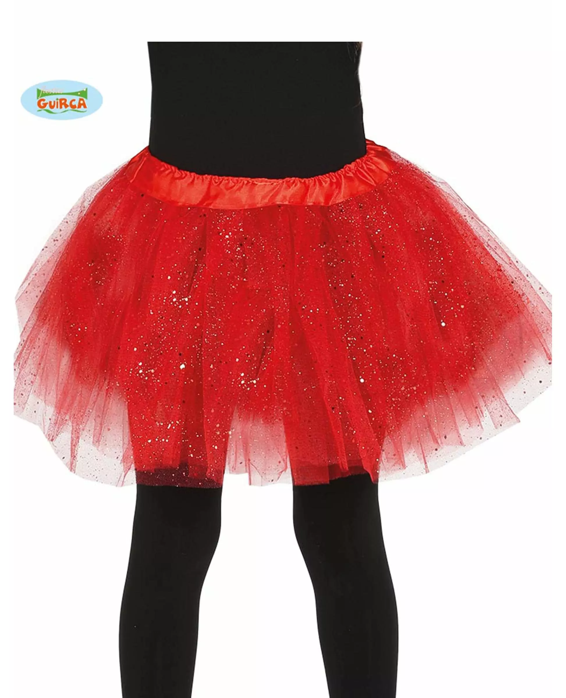 Skinnende! Denne jentetutuen er laget av røde tyllpaneler besatt med sølvpaljetter som får den til å glitre. Linningen har en elastisk strikk. Den vil være perfekt til avslutningsfester eller karneval. Inkludert tilbehør: Tutu Materiale: 100 % polyester 100 % polyester