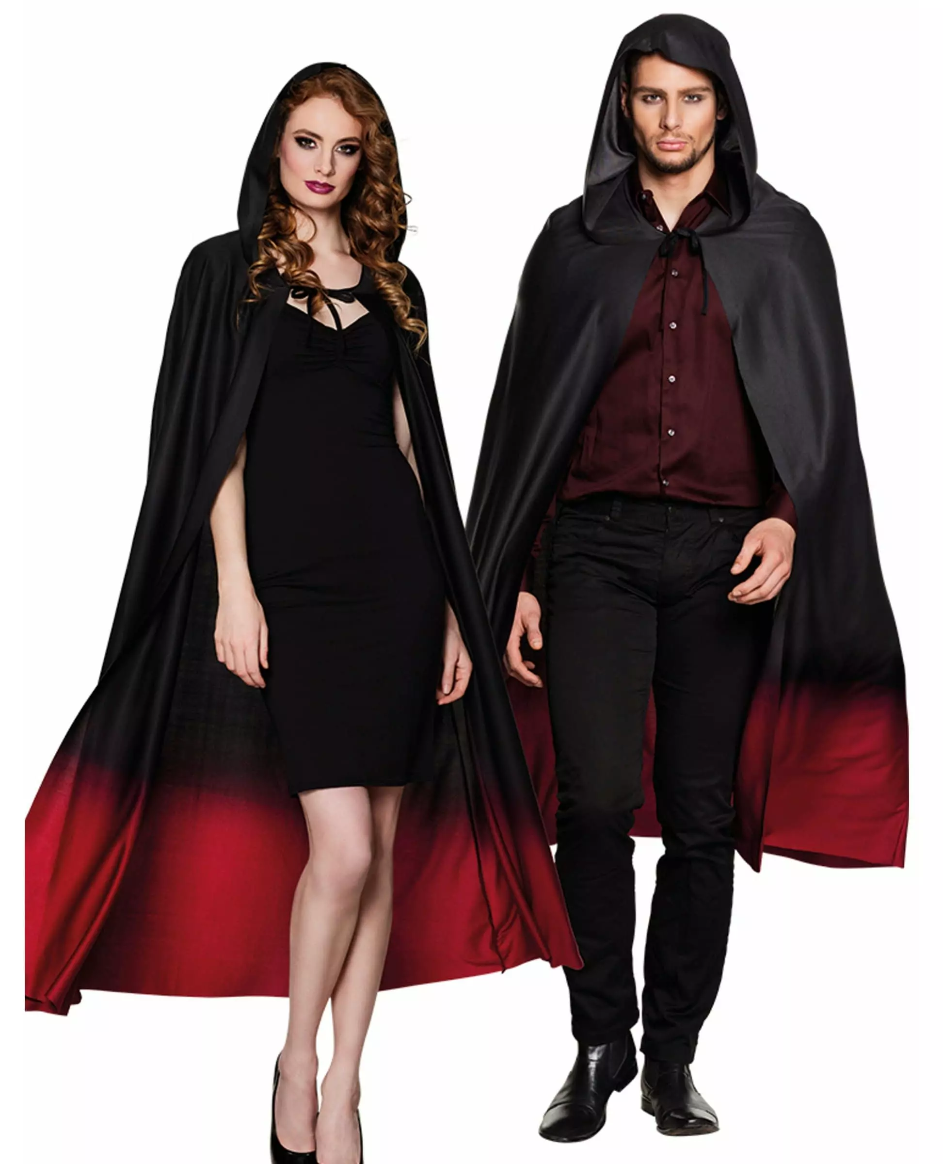 Rød, svart gradientkappe for Halloween for voksne