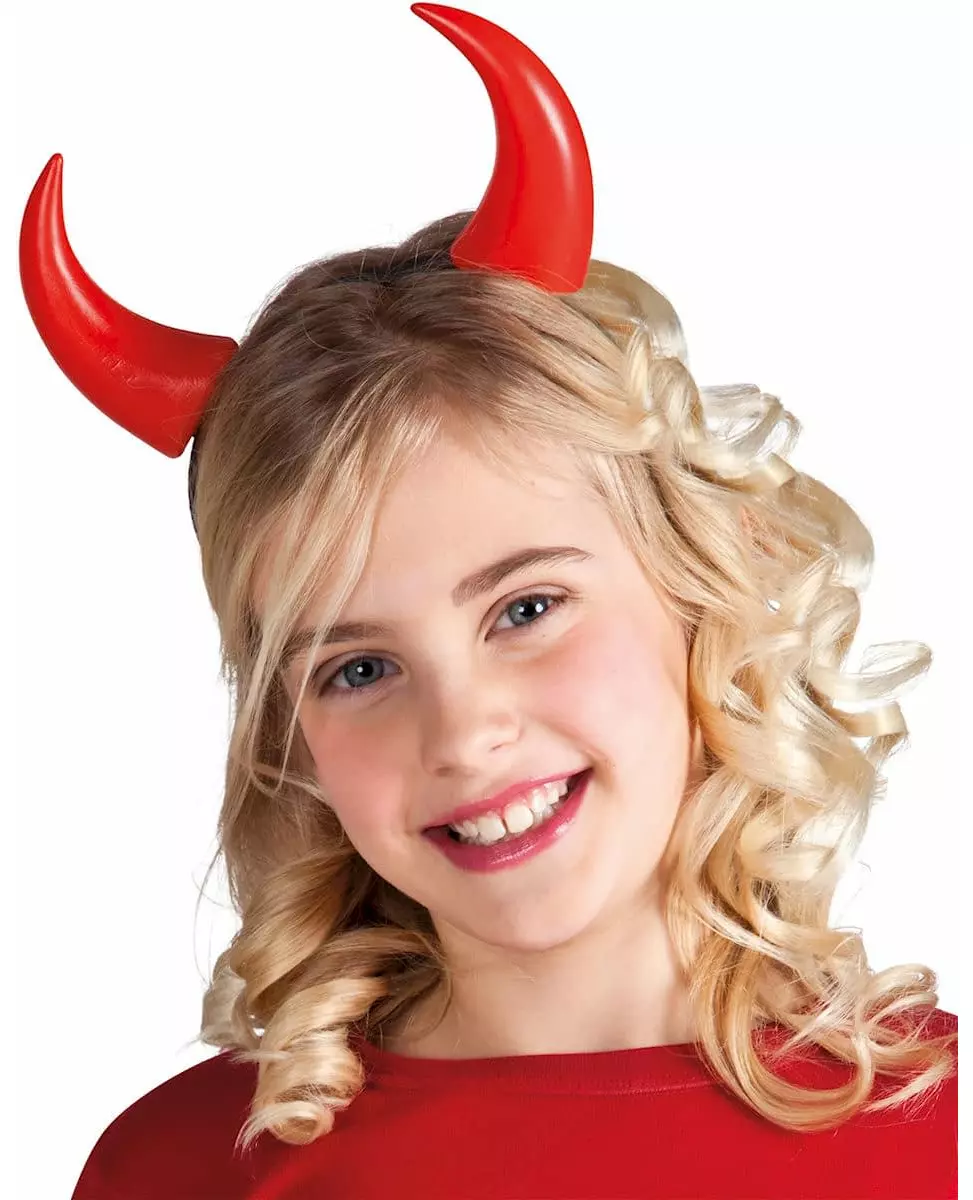 Lille djevel! Disse djevelhornene er for barn. De er festet til et svart pannebånd for perfekt passform på hodet. Skarlagenrød i fargen, måler hver omtrent 11 cm og er laget av stiv plast. Ideelle for å fullføre et djevelkostyme på Halloween-kvelden!. Inkludert tilbehør: Hornbånd Materiale: Plast
