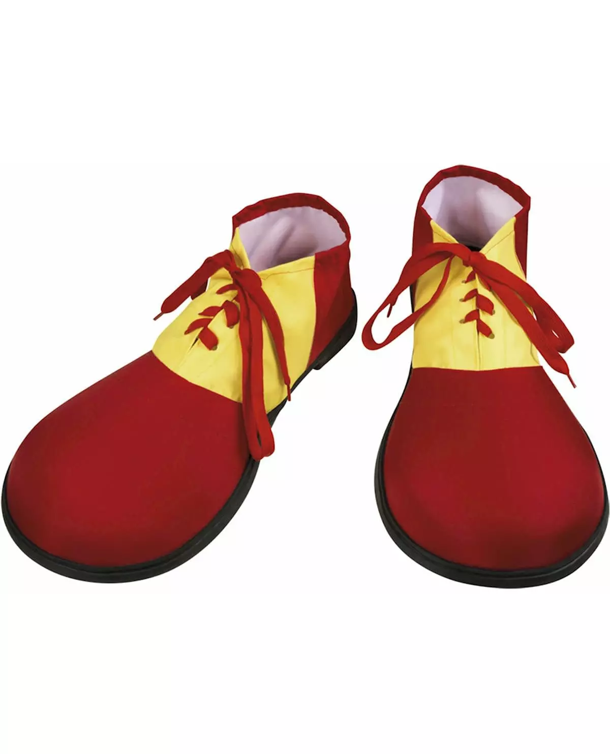 Fullfør klovneantrekket ditt med disse gigantiske klovneskoene! Disse gigantiske klovneskoene er gule og røde. De har brede røde lisser for å knyte skoene. Disse skoene måler omtrent 35 cm i lengden og 17 cm på det bredeste. Dette tilbehøret vil være perfekt for å fullføre klovnekostymet ditt til karneval. Inkludert tilbehør: 2 sko
