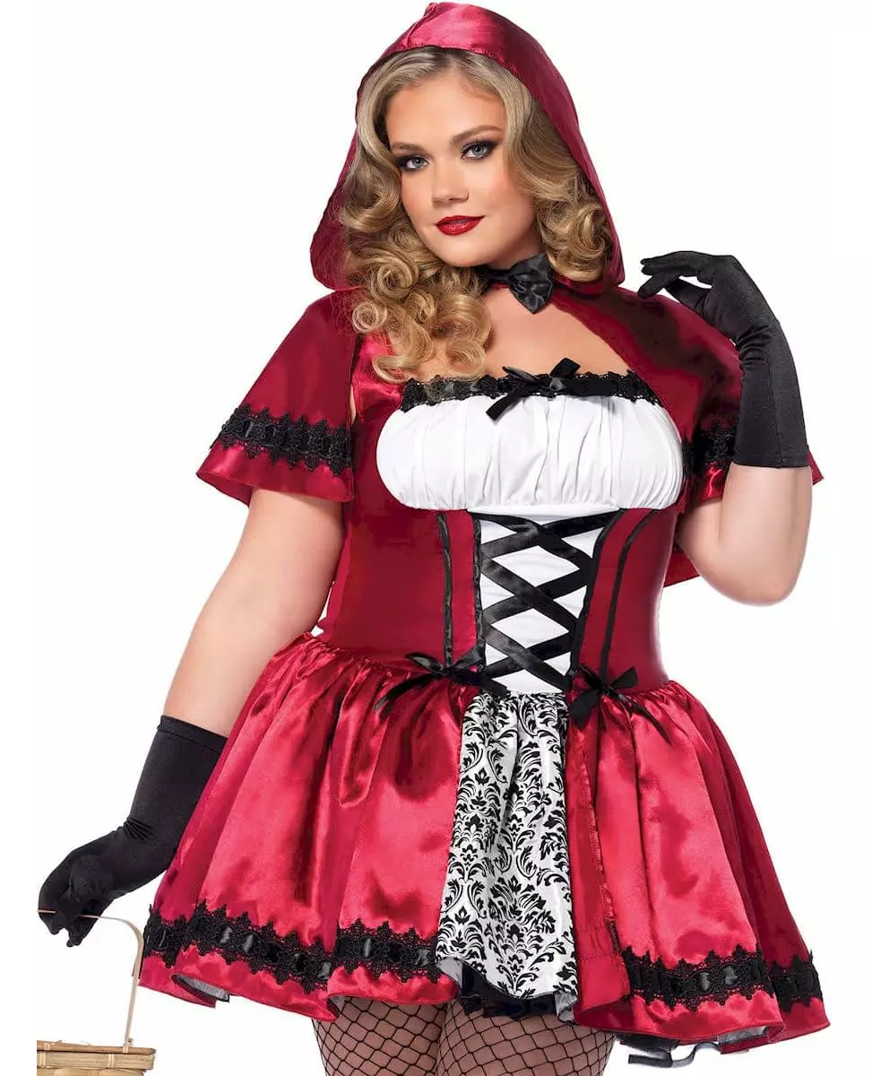 Forvandle deg til en gotisk Rødhette! Dette Rødhette-kostymet for kvinner består av en kjole og en kappe (strømpebukser, hansker, sko og kurv er ikke inkludert). Den korte kjolen er laget av burgunderfarget satengstoff. Den er hvit i midten og har svarte kanter. Et imitert korsett med svart snøring er plassert ved bysten. Tre små satengsløyfer er sydd på brystet og hoftene. Nederdelen av skjørtet er puffet og dekorert med svarte barokkmotiver. En glidelås bak gjør det enklere å bruke. En liten kappe som dekker skuldrene dine, vil gi antrekket et siste preg. Den har en stor hette og måler omtrent 32 cm. Den holder seg i halsen takket være en knute og en ripe. Dette kostymet vil være perfekt for å forvandle deg til en gotisk Rødhette under utkledningsfestene dine med venner. Inkludert tilbehør: Kappekjole Materiale: 100 % polyester Stell: For hånd