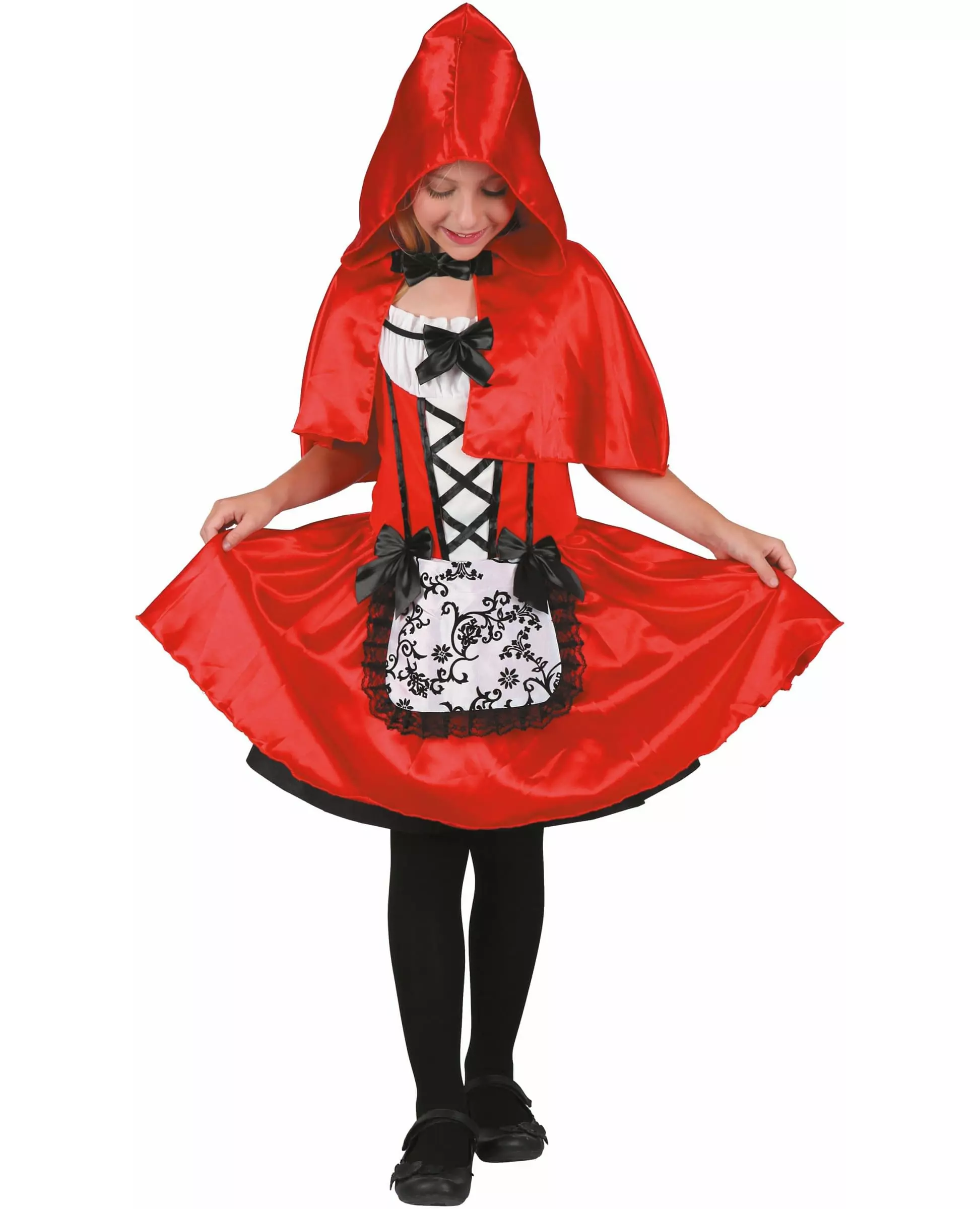 La oss ta en tur i skogen ... Dette Rødhette-kostymet for jenter består av en kjole og en kappe. Kjolen er blodrød med en svart på hvit overdel med en vakker hvit lomme med svarte sløyfer og en annen sløyfe i brysthøyde. En kappe med en blodrød hette vil også bli lagt til for å fullføre dette Rødhette-kostymet for barn perfekt. Dette kostymet vil være perfekt for å besøke bestemoren din ... eller for en utkledningsfest basert på historier eller til karneval! Inkludert tilbehør: Dress, kappe med hette Materiale: Polyester Vedlikehold: Håndvask