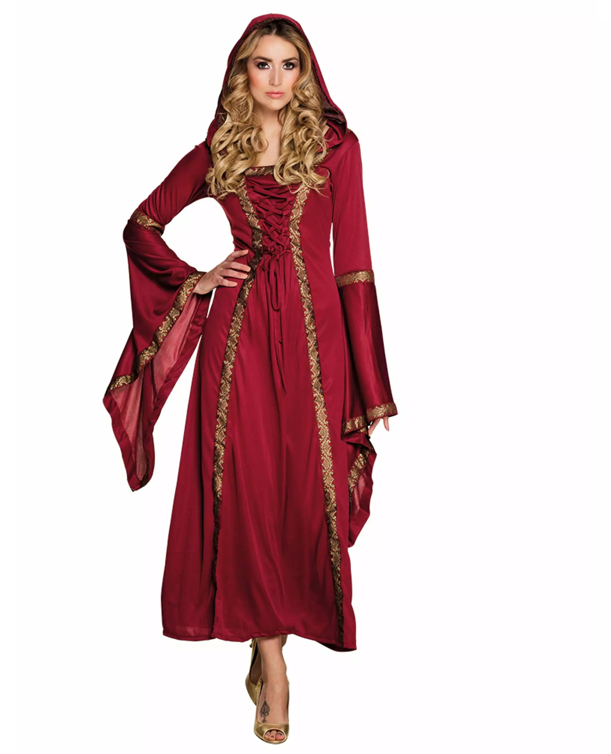 Ildgudinnen! Dette røde damekostymet er for kvinner. Det har en lang, flagrende kjole. Kjolen er i middelalderstil. Den har lange pagodeermer og snøring som gir inntrykk av en overdel. Den har også en stor hette som gir den sin kongelige stil. Til slutt, for å sikre vakker kvalitetsfinish, er den kantet med pen gullkant som fremhever kurvene på denne kjolen, og samtidig fremhever dine kurver. Denne vakre røde damekjolen vil være perfekt for å legemliggjøre en trofast tjener av ildmesteren. For en middelaldertema-kveld, TV-serier eller til karneval. . Inkludert tilbehør: kjole med hette Materiale: 100 % polyester 100 % polyester 100 % polyester 100 % polyester 100 % polyester 100 % polyester