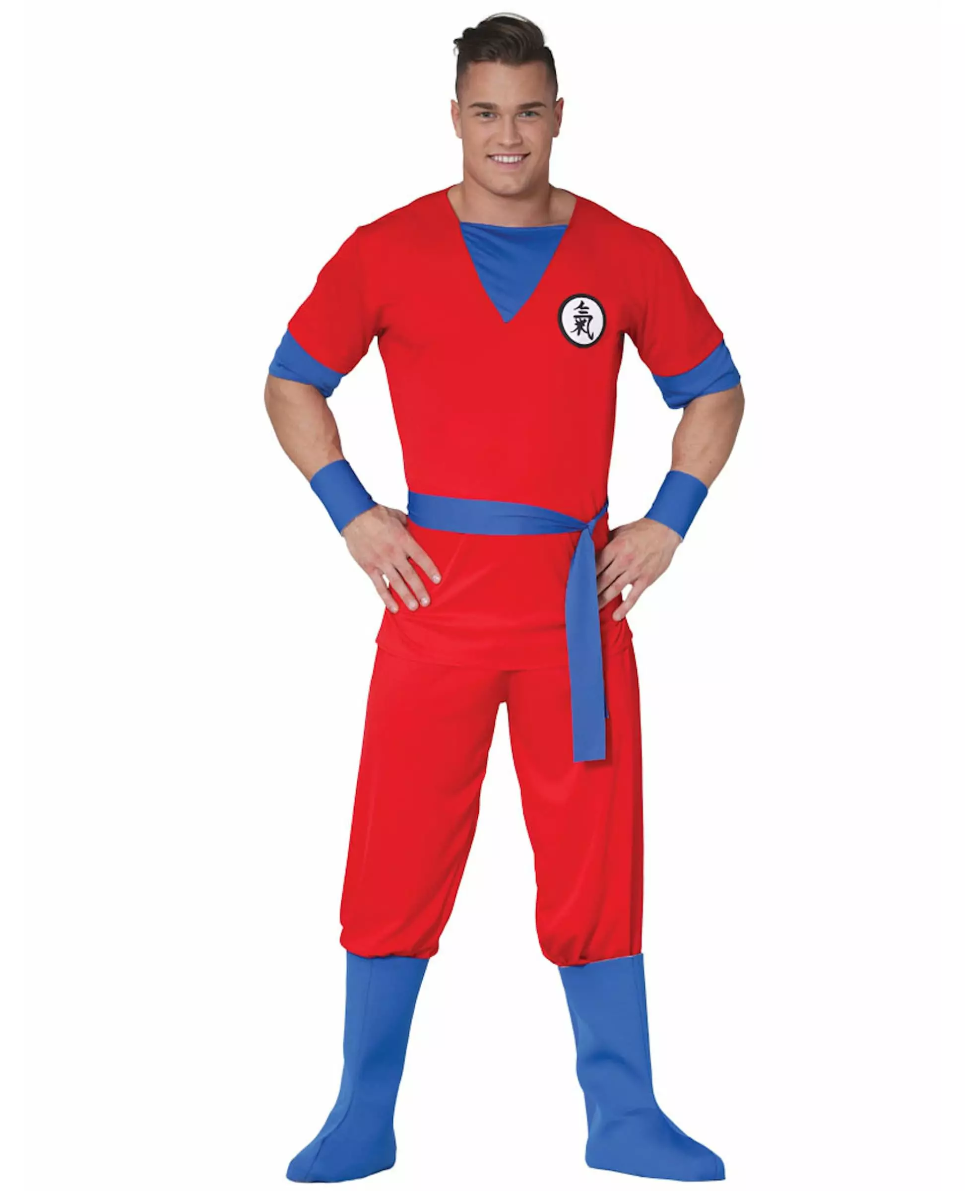 En ekte romkriger! Dette mangakostymet er for menn og inkluderer en t-skjorte, bukser, støveltrekk, mansjetter og et belte. T-skjorten og buksene er knallrøde. Et japansk symbol er avbildet på brystet. Det flagrende stoffet er behagelig å ha på seg. Buksene har en elastisk linning. Støveltrekk og mansjetter er laget av mykt blått skum. Håndleddsbeskytterne har borrelåslukking, og støveltrekkene glir på som sokker med åpen underside, slik at du kan bruke skoene dine med dem. Beltet er blått og knytes enkelt rundt livet. Dette kostymet, sammen med en passende parykk, vil være perfekt for å spille en mangahelt på en temafest eller et stevne. Inkludert tilbehør: T-skjorte, bukser, belte, 2 ermer, 2 støveltrekk. Materiale: 100 % polyester. Vedlikehold: Håndvaskbar.