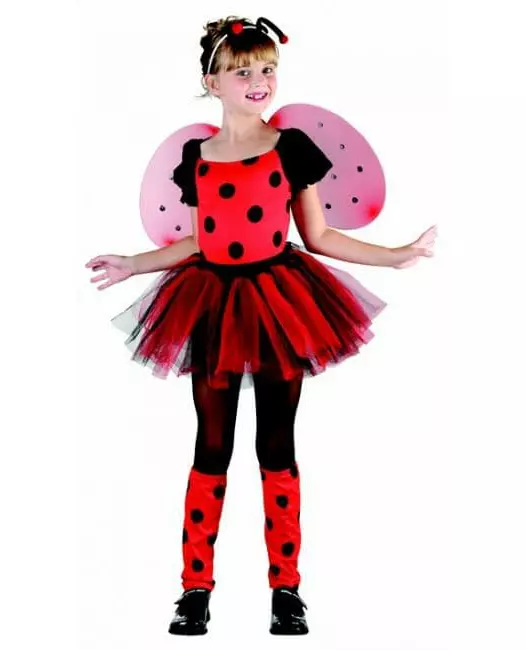Velg et marihønekostyme med tutu. Dette marihønekostymet er for jenter og inkluderer 6 elementer: - En svart og rød trikot med svarte prikker. Det er en body som tas på nedenfra og ikke har noen spesielle fester. Ermene er puffede og ferdige med strikk. - Skjørtet består av en rekke svarte og røde tyll. En bred svart strikk i midjen vil sikre barnets komfort og vil ikke hindre bevegelsene deres. - Et par matchende gamasjer (røde med svarte prikker) som dekker leggene. En strikk vil sikre støtte på underbena. - Et plastpannebånd med to fleksible antenner på. Det vil perfekt tilbehør til enhver av datterens frisyrer. - Et par metallinnrammede vinger. Utstyrt med to strikker, kan de tas på som en ryggsekk. En pen stoffblomst dekorerer baksiden av dette essensielle tilbehøret. Med dette svært komplette kostymet vil din lille prinsesse være dronningen på en bursdagsfest eller på karneval. Inkludert tilbehør: Leotard Tutu Pannebånd Par vinger Leggvarmere Materiale: 100 % polyester Vedlikehold: Håndvask