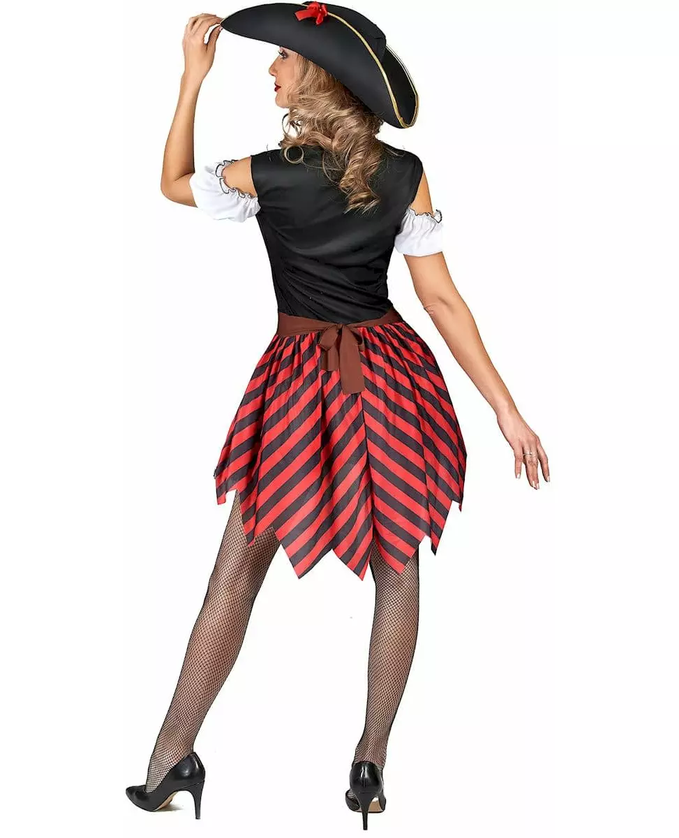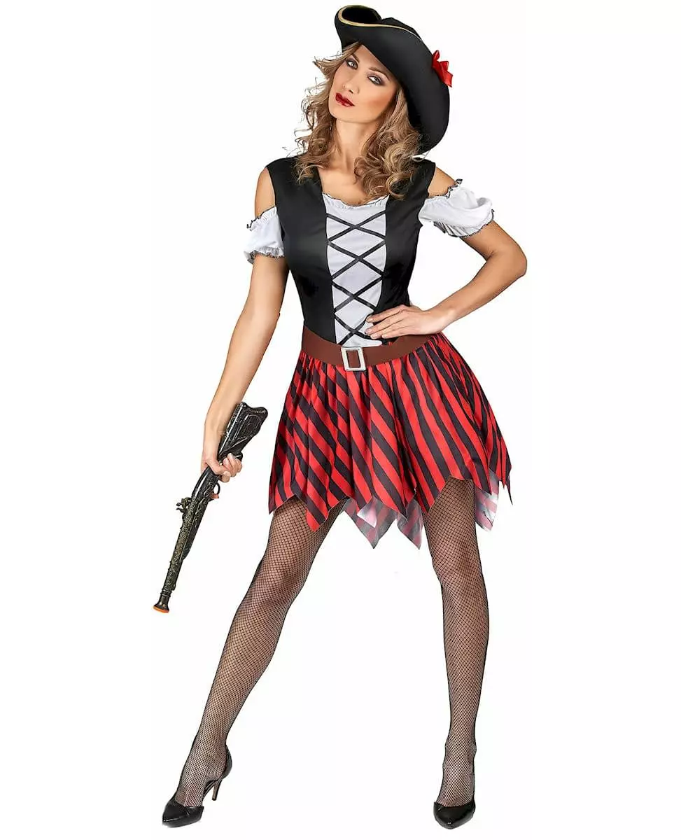 Rødt og svart stripete piratkostyme til dame