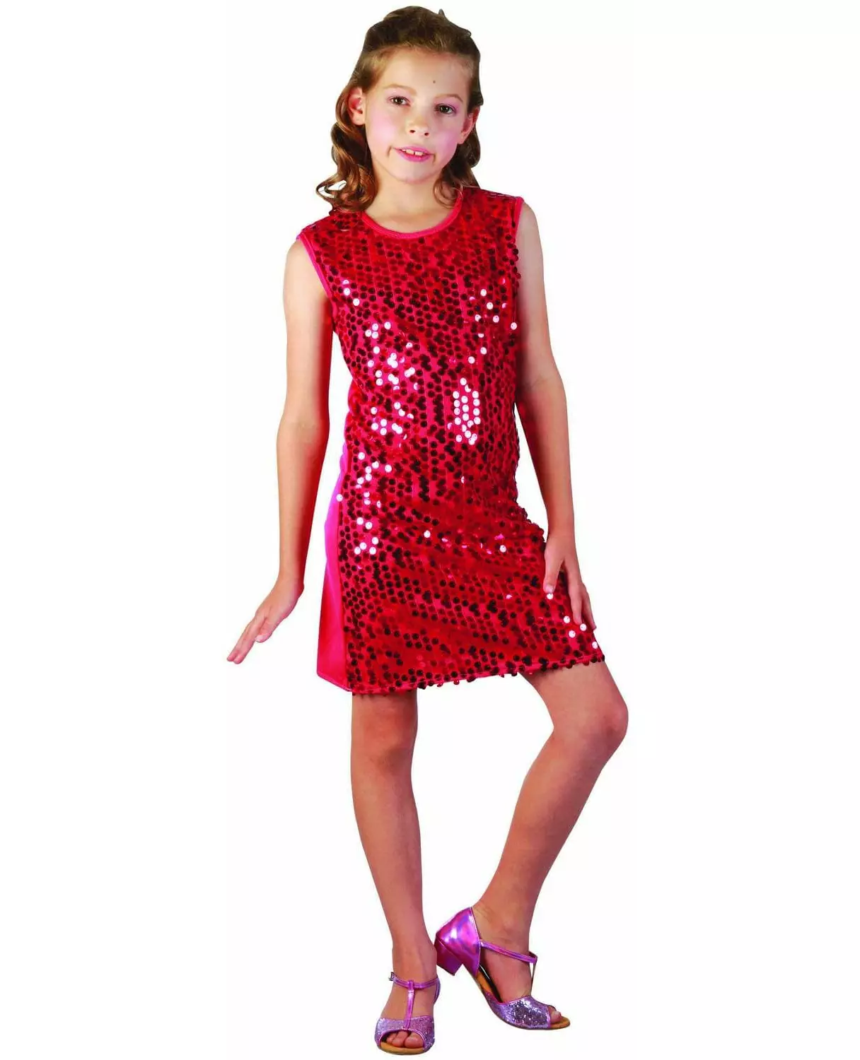 Bli en 80-talls discostjerne Dette discokostymet for jenter består av en kjole (sko ikke inkludert). Denne discokjolen er kort og ermeløs. Den er laget av rødt stoff dekket med røde paljetter over hele fronten. Baksiden av kjolen er ensfarget rød. Denne pene, skinnende kjolen vil være ideell for å forvandle barnet ditt til en discostjerne til en 70-talls kostymefest eller til karneval. Inkludert tilbehør: Kjole Materiale: 100 % polyester Stell: Håndvask Mål: For størrelse 4/6 år måler kjolen omtrent 60 cm lang og 30 cm bred.