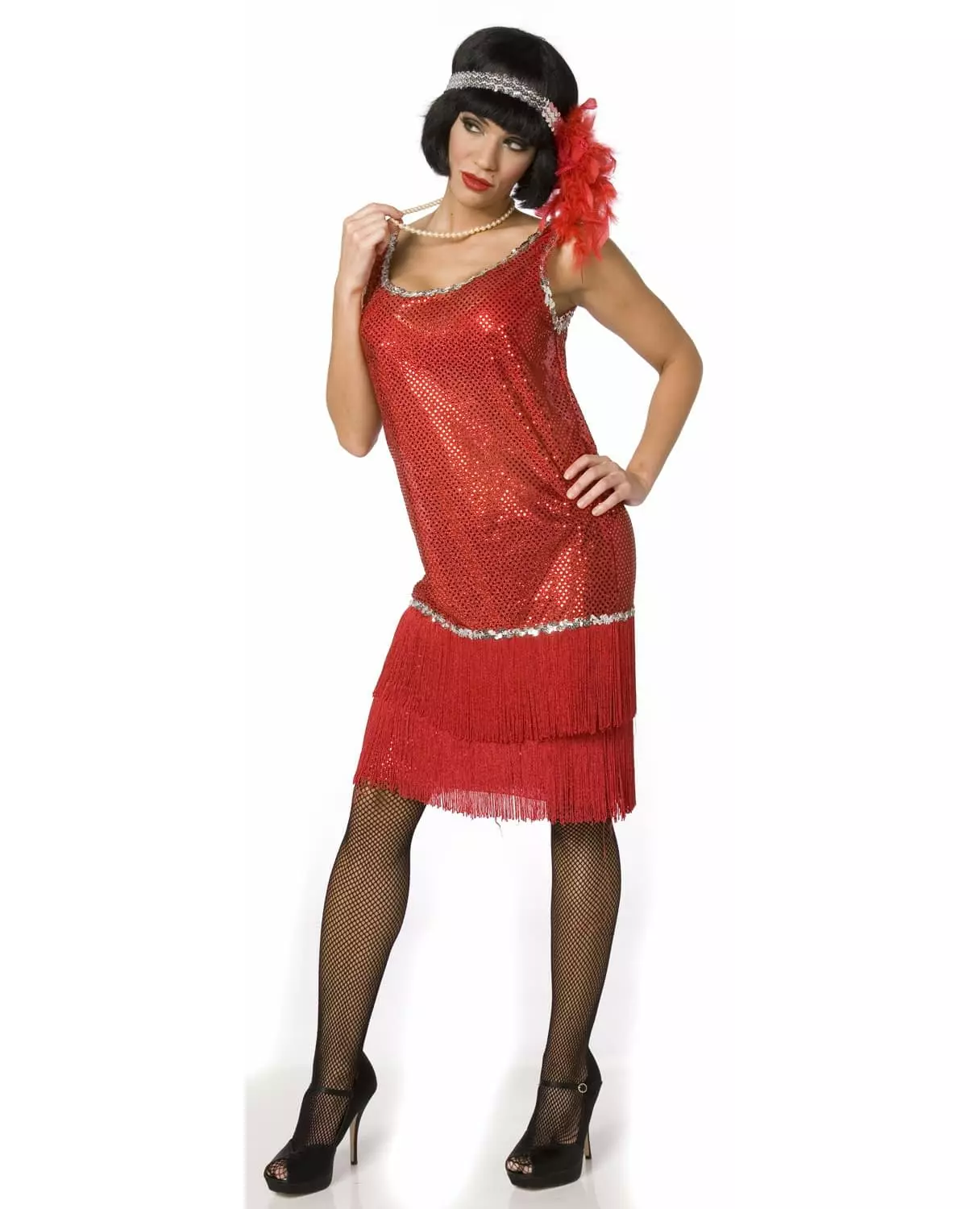 Rødt paljettbesatt Charleston-kostyme for kvinner