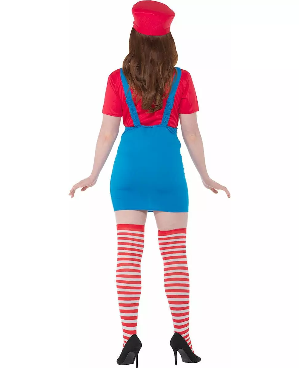 Spill som en videospillhelt i dette røde rørleggerkostymet. Dette røde rørleggerkostymet for kvinner består av et skjørt, en t-skjorte, en lue og strømper. Det høye skjørtet er blått med to stropper. Det er dekorert med gule knapper nederst på stroppene. Den kortermede t-skjorten er rød. Den matchende luen har samme farge. De hvite og røde strømpene pynter kostymet. Dette røde rørleggerkostymet vil være perfekt for å ta deg med som en videospillheltinne på karnevalet. Inkludert tilbehør: Skjørt, T-skjorte, lue, strømper Materiale: 100 % polyester Pleie: Håndvask
