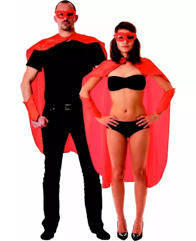 Bli en superhelt for en dag Dette røde superheltsettet for voksne består av en kappe, en maske og et par mansjetter (jumpsuit og belte er ikke inkludert). Den lange kappen er laget av satengstoff og er rød. Den måler omtrent 117 cm lang og lukkes foran med borrelås. Masken, som er laget av stoff som matcher kappen, holdes til ansiktet med en strikk. De røde mansjettene danner et punkt nederst på armene. Dette settet vil være perfekt for å enkelt sette sammen et superheltantrekk til karneval. Inkludert tilbehør: Ulvkappe 2 Mansjetter Materiale: 100 % polyester Vedlikehold: Håndvask