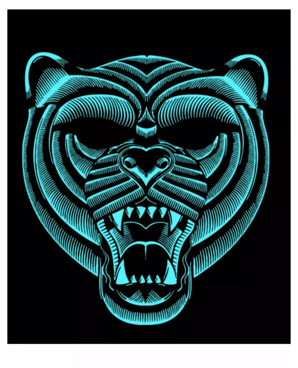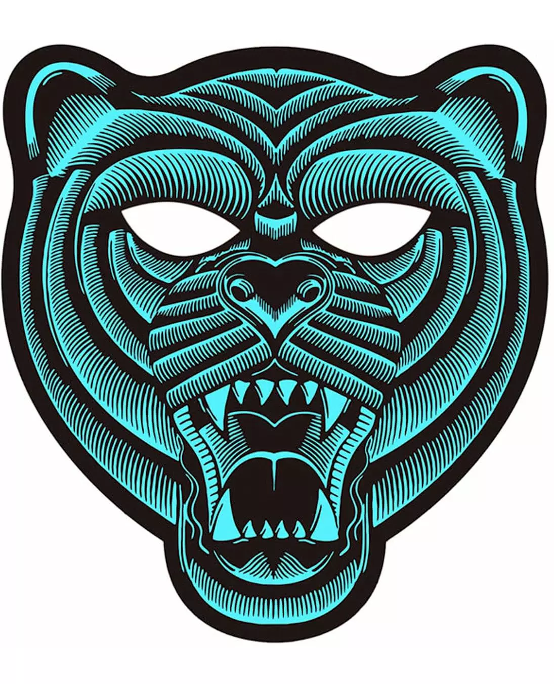 Lys opp festen din med denne LED-reaktive tigermasken for voksne! Denne LED-reaktive tigermasken er for voksne. Den reagerer og lyser opp i henhold til rytmen til musikken og lyden. Denne masken forestiller et tigerhode som lyser blått når den er slått på. En ledning lar deg feste masken bak hodet, samt boksen som driver masken, slik at du slipper å holde den i hånden. Du trenger 2 AA-batterier for å drive masken (batterier ikke inkludert). Tre lysmoduser er mulige: lang varighet, lang blinking og rask blinking. Med denne LED-tigermasken, som reagerer på musikkens volum, vil du gjøre et sterkt inntrykk på en festival, på karneval eller på en kostymefest!. Inkludert tilbehør: En maske Materiale: Plast