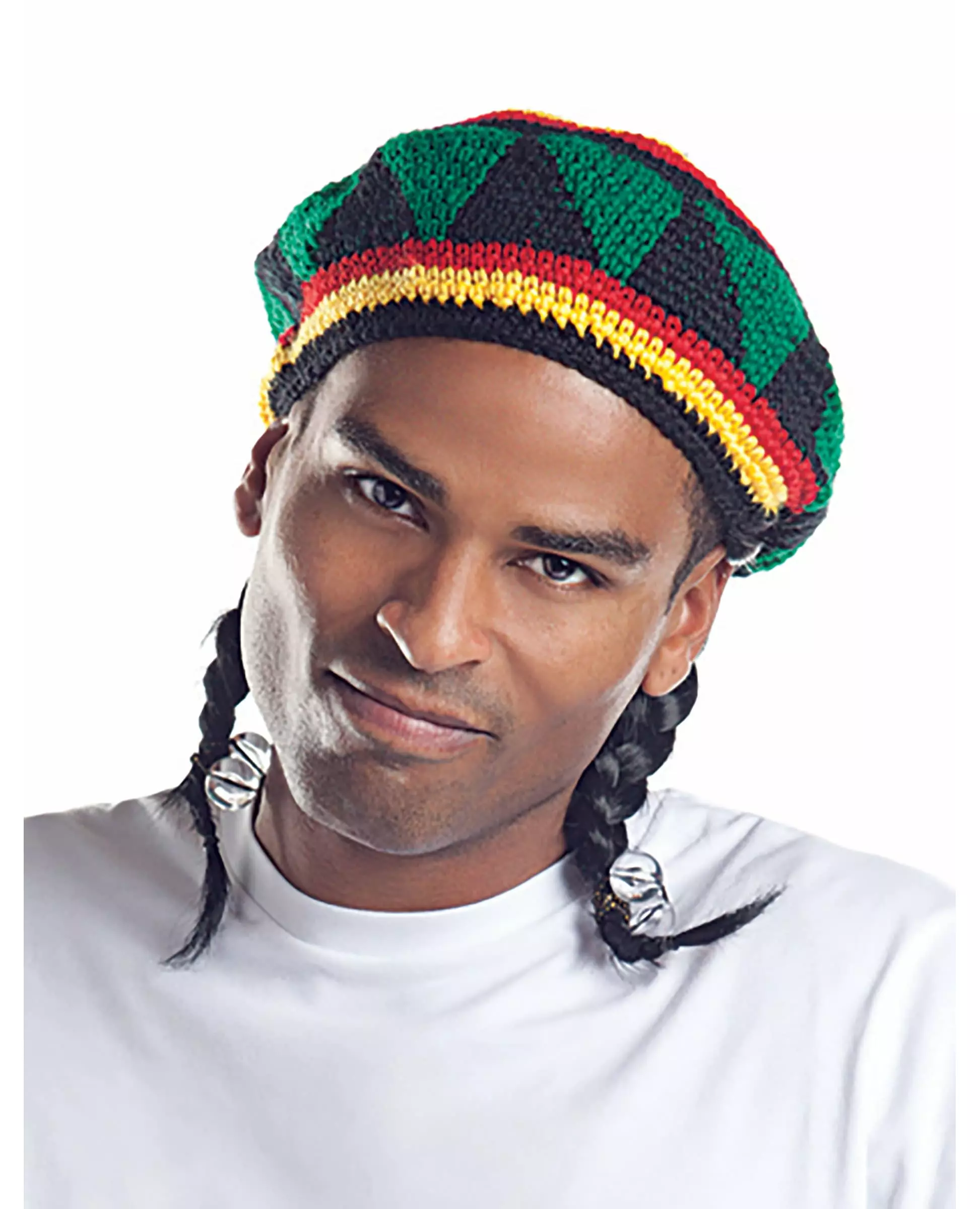 Reggae Star-parykk for menn inkluderer: lue og fletter.