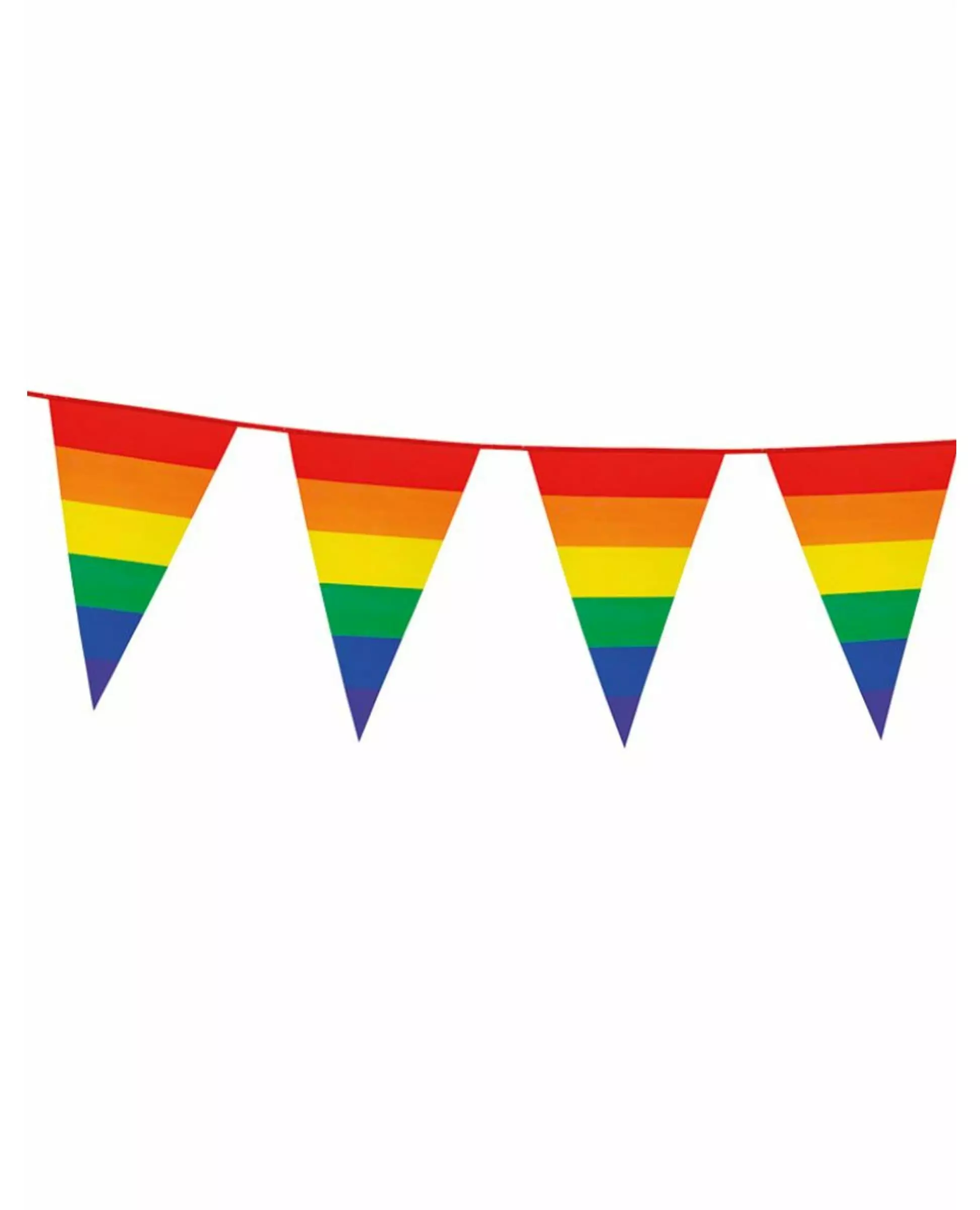 Åtte meter med farger! Denne girlanderen er laget av plast og måler omtrent 8 meter i lengde. Den har 14 vimpler med flerfargede striper. Hver vimpel måler omtrent 29 x 43 cm. Denne girlanderen vil være perfekt for å tilføre et preg av farge til romdekorasjonen din under en fargerik eller temakveld. Inkludert tilbehør: Girlander Materiale: Plast