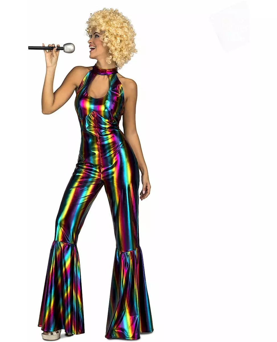 Regnbuefarget disco-jumpsuit til dame
