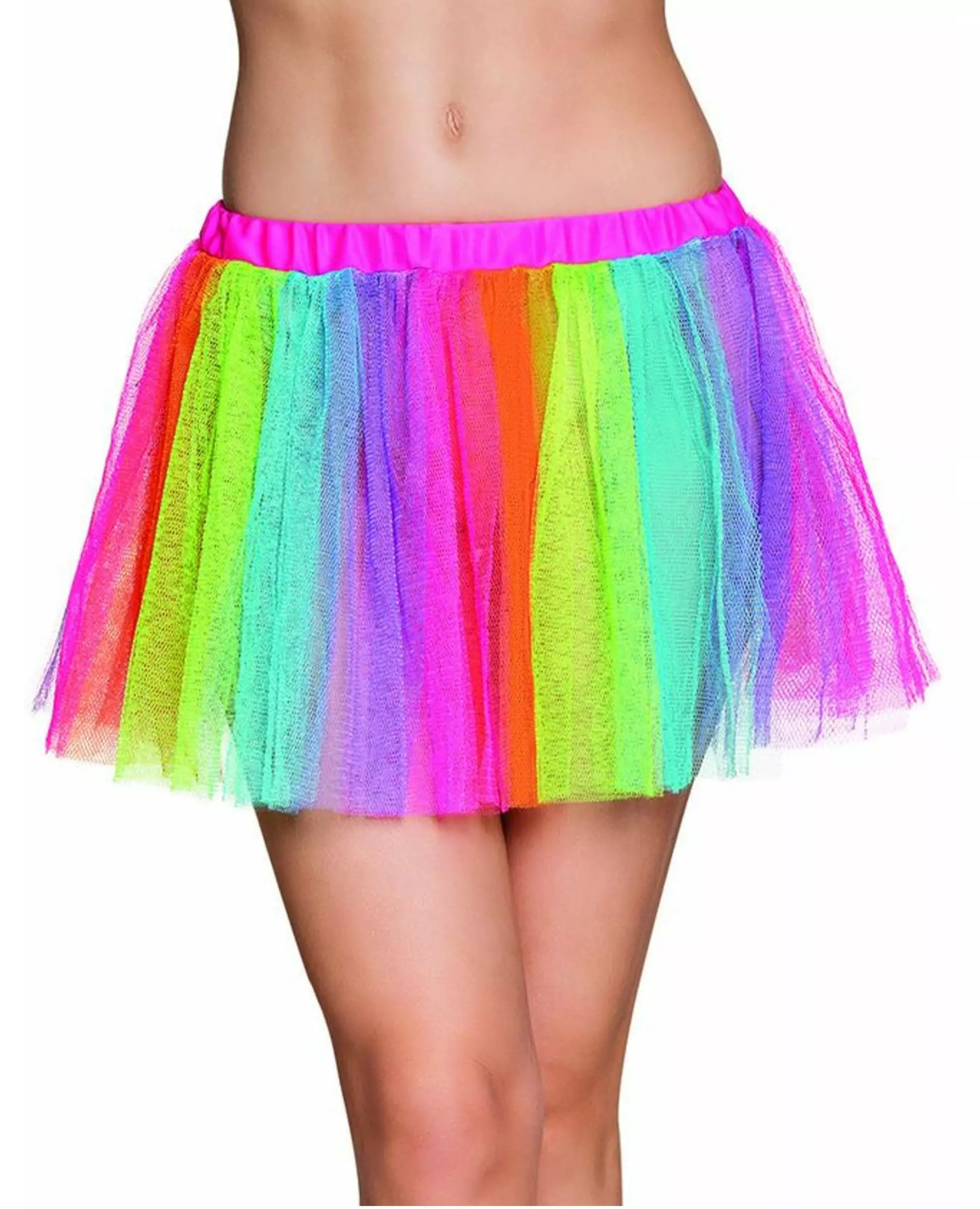 Så mange farger! Denne regnbuefargede tutuen for kvinner er laget av tyll. En størrelse passer alle, med elastisk linning, måler den omtrent 30 cm i lengden. Dette tilbehøret vil være perfekt for å fullføre et fargerikt kostyme til kostymefester eller karneval. Inkludert tilbehør: Tutu Materiale: 95 % polyester - 5 % elastan Pleie: Håndvask