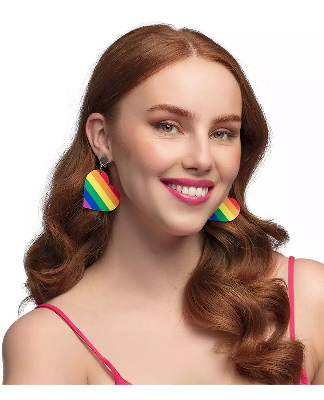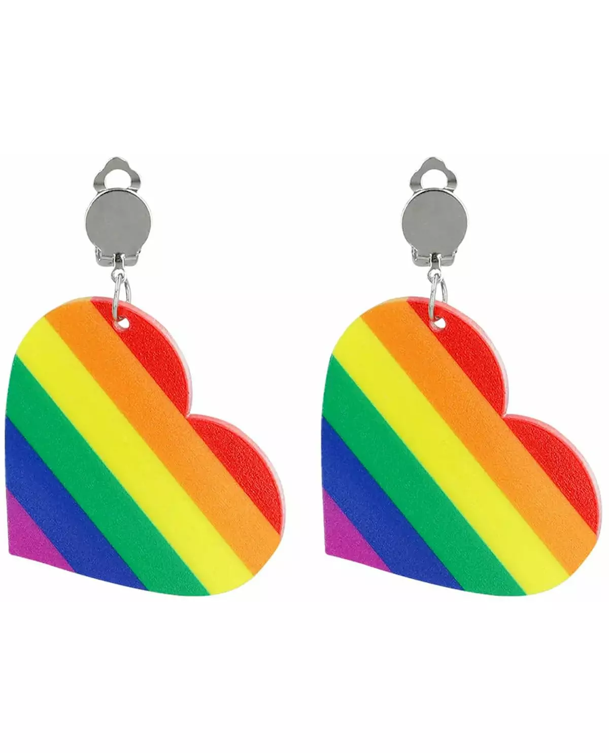 En fargerik favoritt! Disse regnbuehjertede øredobbene er det perfekte tilbehøret for å gi antrekket ditt et gledelig og selvsikkert preg. De er lette å bruke, og viser stolt frem regnbuens farger i en tydelig synlig hjerteform, ideell for å fange alles oppmerksomhet. Disse øredobbene er et sant symbol på uttrykk og frihet, enten de brukes under en pride-marsj, en festival eller bare for å hevde din hverdagsstil. Inkludert tilbehør: 1 par klips-øredobber