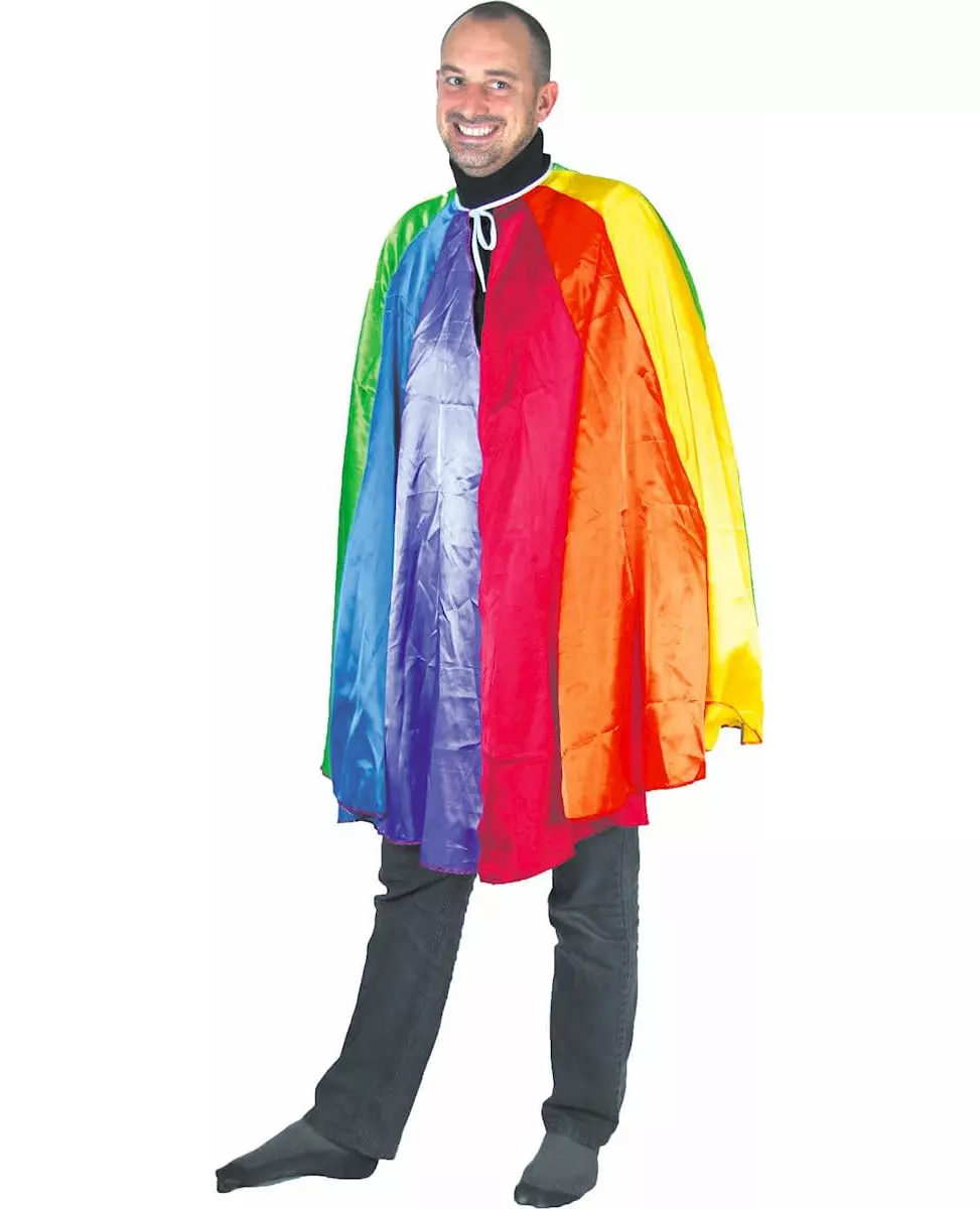 Fargerik! Denne mellomlange kappen er i regnbuens farger. Den har en hvit snor som lar deg holde den på plass på skuldrene. Denne kappen vil være et fargerikt tilbehør til antrekket ditt under en temafest eller en homofil pride. Inkludert tilbehør: Kappe Materiale: Polyester Stell: Håndvask