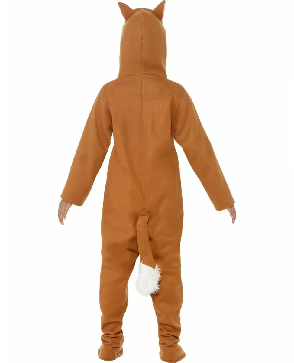 Vær like slu som en rev! Dette revekostymet for barn består av en jumpsuit. Denne fawnfargede jumpsuiten er laget av et fint fleece-effekt stoff. Jumpsuiten er lettere på magen. Overtrekksskoene er en forlengelse av bena. De holdes enkelt under føttene med en strikk. En polstret hale er plassert på baksiden av jumpsuiten. Den festes enkelt til jumpsuiten med borrelås. Hetten forestiller revens hode. Denne jumpsuiten lukkes foran med glidelås. Dette revekostymet vil være perfekt for å delta på en dyrefest. Inkludert tilbehør: Jumpsuit Materiale: 100 % polyester Pleie: Håndvask